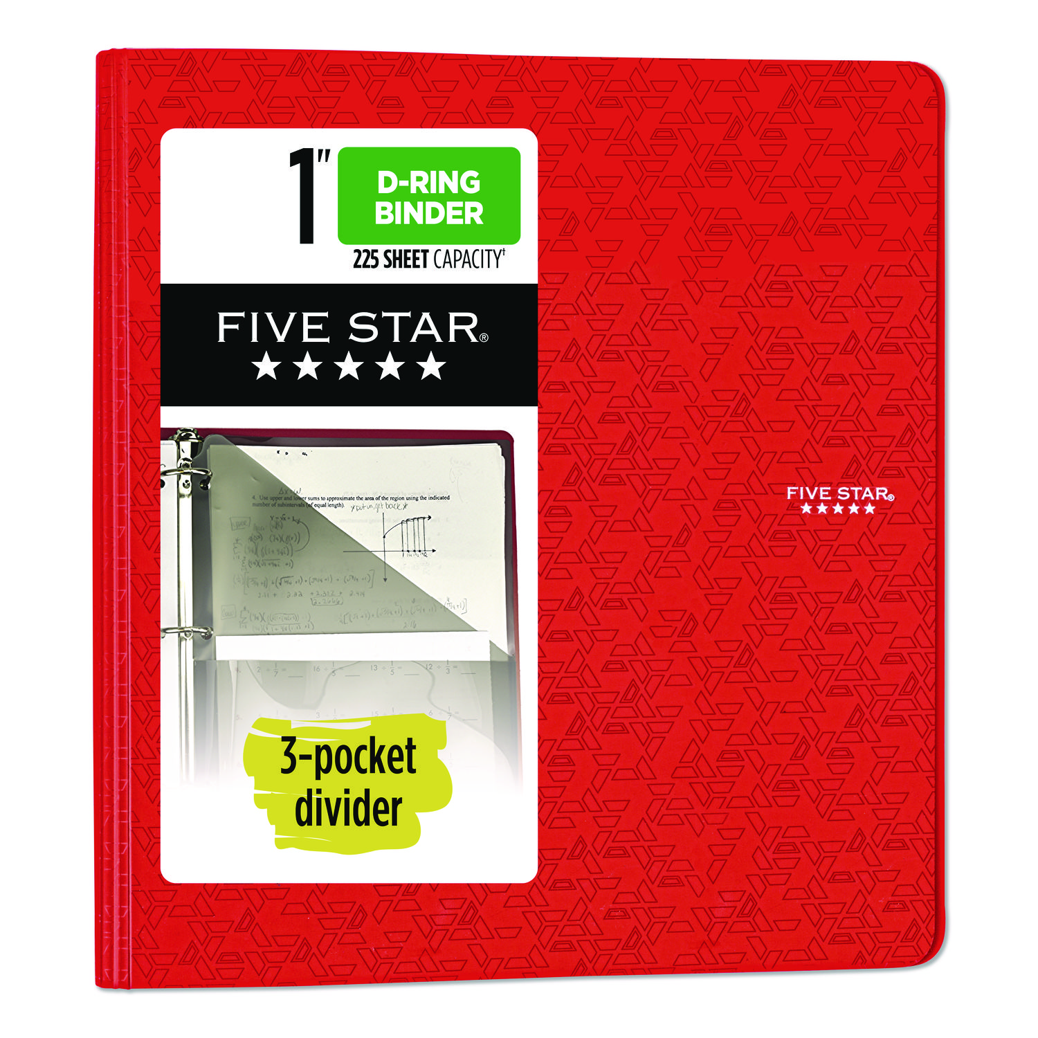 Lasts all year! Guaranteed! Durable binder holds up to 225 sheets, when using 15-lb filler paper. Three D-rings allow for increased paper storage and keep 3-hole punched sheets securely in place. Flexible spine structure lays flat for easy desktop use. Includes a 3-pocket divider to keep loose sheets neatly organized inside the binder. Binder’s durable, one-piece plastic construction withstands frequent use and protects your contents from damage. Holds letter size 8.5″ x 11″ sheets. Available in Black, White, Tidewater Blue, Forest Green, Fire Red, Harvest Yellow. Color chosen for you. Binder Type: Ring; Binder Style: Non-View; Binder Size Capacity: 1″; Binder Sheet Capacity: 225.