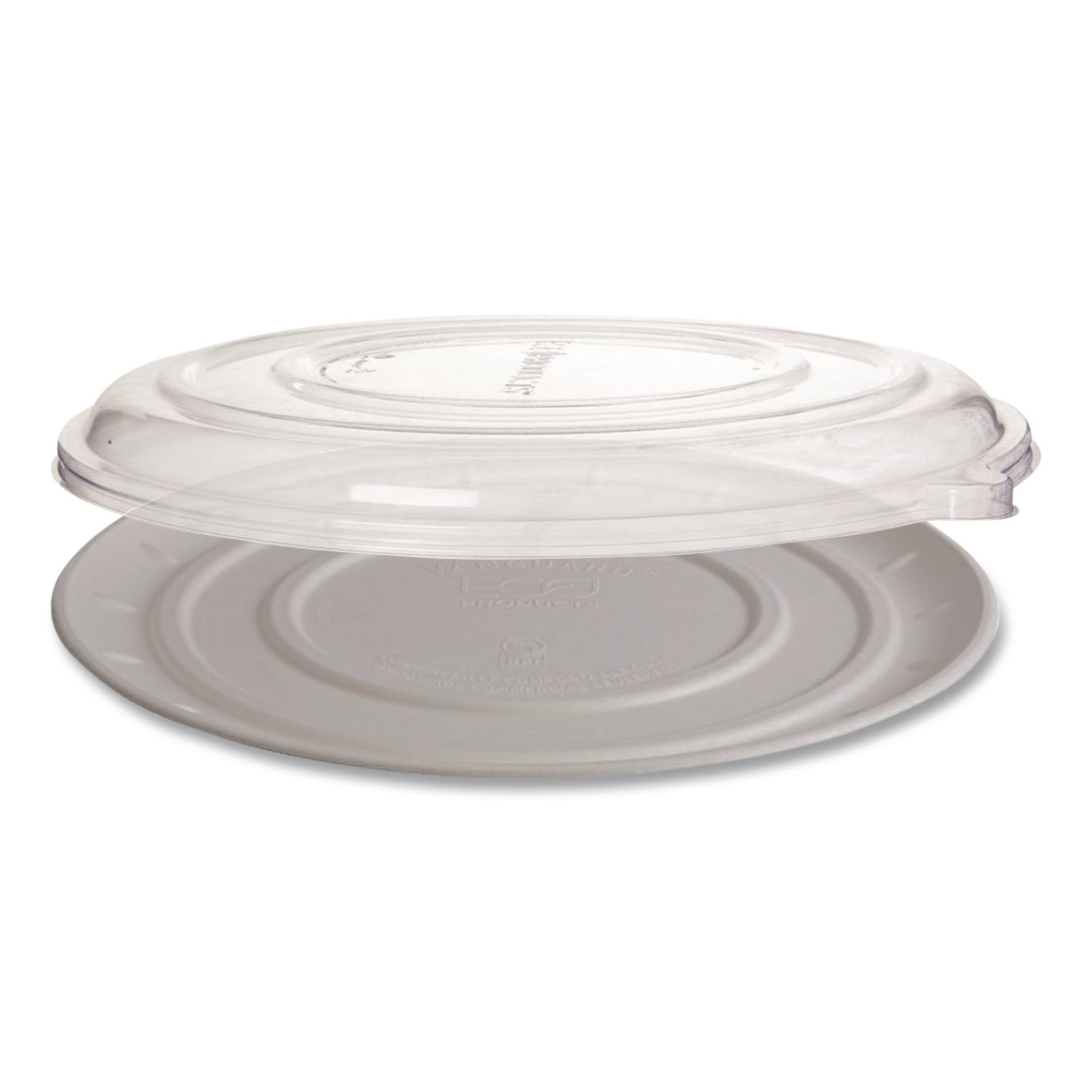 Eco-Products 100% Recycled Content Pizza Tray Lids are crafted entirely from post-consumer recycled PET, ensuring an option that eliminates the need for virgin petroleum. These lids are as strong and durable as traditional plastic but with a sustainable edge. Their clear design allows for easy visibility of pizza toppings, making them practical for both presentation and convenience. By choosing these lids, you support recycling efforts while enjoying the same reliable performance as conventional plastic lids. Ideal for businesses and consumers that want a product that combines durability with a commitment to sustainability. Food Container Type: Lid; Material(s): PET; Material Type: Plastic; Color(s): Clear.