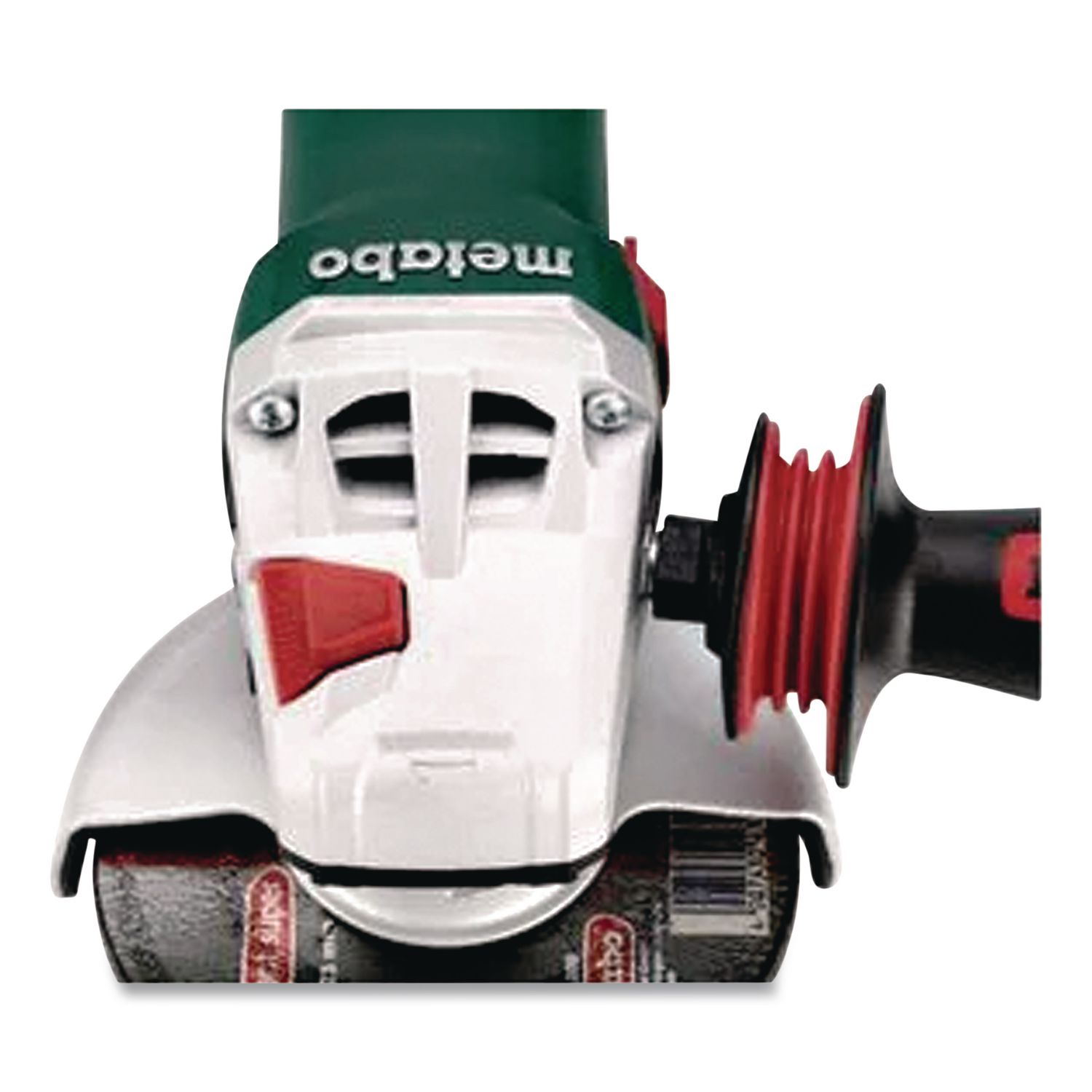 Engineered for heavy duty grinding and cutting, WE15-150 Quick 13.5 Amp 6 in. Angle Grinder with TC Electronics and Lock-On Sliding Switch uses a powerful Metabo LongLife motor that includes advanced designs to optimize air flow for cooler operation and extend longevity in harsh environments. This compact angle grinder features a Quick change wheel system that allows the fastest wheel changes available, and a side-mounted slide lock-on switch. Additional electronic features include speed stabilization, overload protection, power interruption protection and soft start. Grinder Type: Angle; Wheel Diameter: 6″; Voltage: 120 V; Wattage: 900 W.