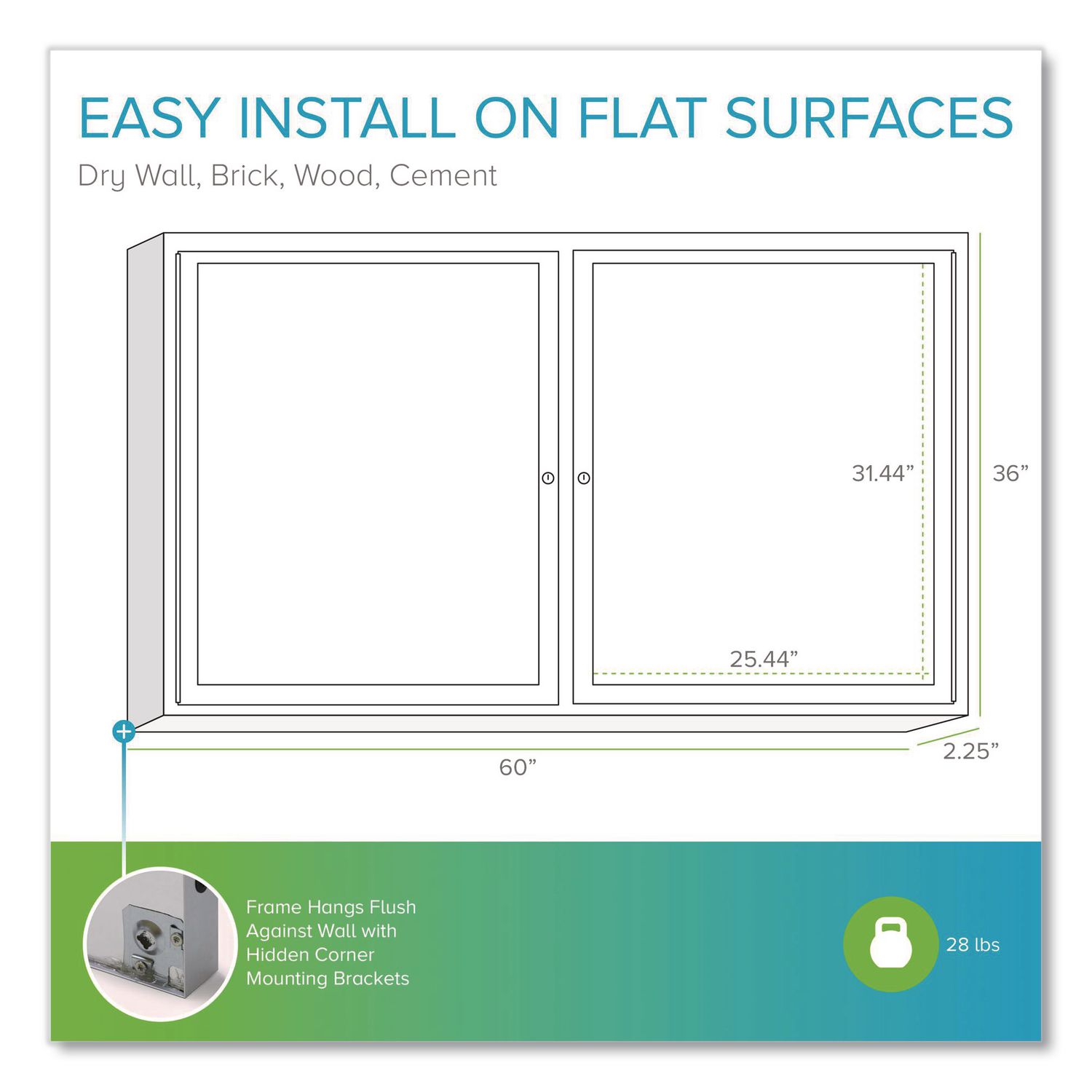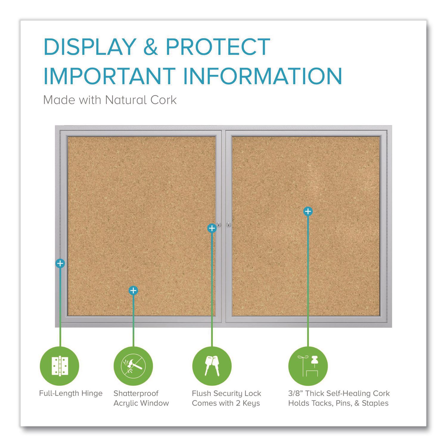 2 Door Enclosed Natural Cork Bulletin Board with Satin Frame, 60″ x 36″, Tan Surface, Satin Aluminum Frame