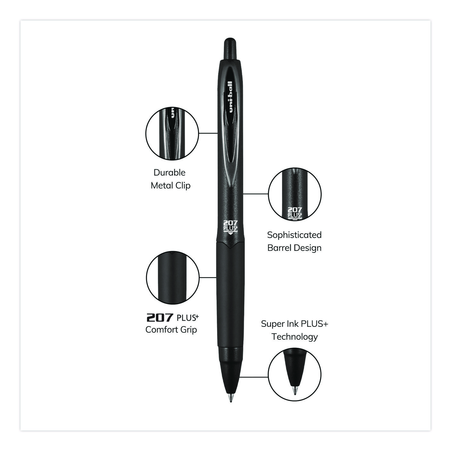 Take your writing to new heights with 207 Plus+ Retractable Gel Pens. Their precision point delivers rich, clean lines, and their advanced gel ink produces an enhanced smudge- and smear-free writing experience with exceptional smoothness, fast drying times and extra-bold line intensity, ensuring that every word you write stands out. Ideal for everyday writing tasks, jotting down notes and signing all of your important documents, Super Ink PLUS+ also entraps the gel in paper to produce fraud-, fade- and water-resistant documents that resist check-washing and bleaching. A seamless rubber grip provides a comfortable hold that helps you complete long writing projects with precise control. Refine your style with the sophisticated profile of 207 Plus+ gel pens. Pen Sub-Brand & Product Family: 207 Plus+; Pen Type: Gel Pen; Pen Style: Retractable; Pen Tip Type: Conical.
