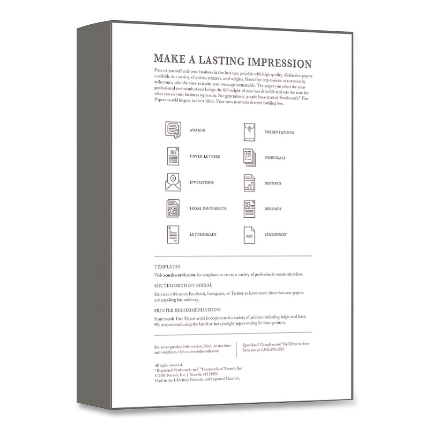 Life Is Noteworthy. Create official letterheads, forms, and other documents with this Southworth 25% Cotton Fine Business Paper. The smooth finish bring out the best in graphics and rich text, while the 20-pound stock is ideal for quick print jobs and everyday use. This Southworth business paper comes watermarked and date-coded to put an official stamp on company documents. Sheet/Roll Size: 8.5 x 11; Paper Basis Weight (lb): 24 lb Bond; Paper Grade (gsm): 89 gsm; Paper/Media Color(s): Natural.
