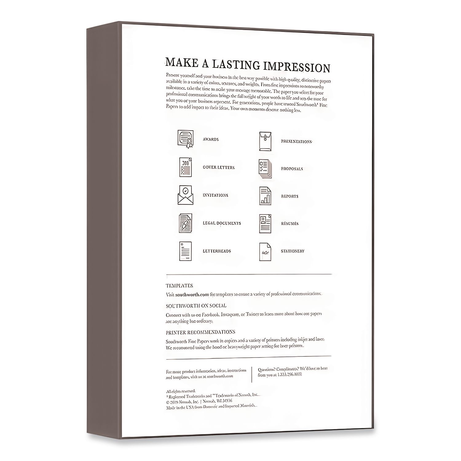 Life Is Noteworthy. Create official letterheads, forms, and other documents with this Southworth 25% Cotton Fine Business Paper. The smooth finish bring out the best in graphics and rich text, while the 20-pound stock is ideal for quick print jobs and everyday use. This Southworth business paper comes watermarked and date-coded to put an official stamp on company documents. Ruled. Sheet/Roll Size: 8.5 x 14; Paper Basis Weight (lb): 20 lb Bond; Paper Grade (gsm): 75 gsm; Paper/Media Color(s): White.