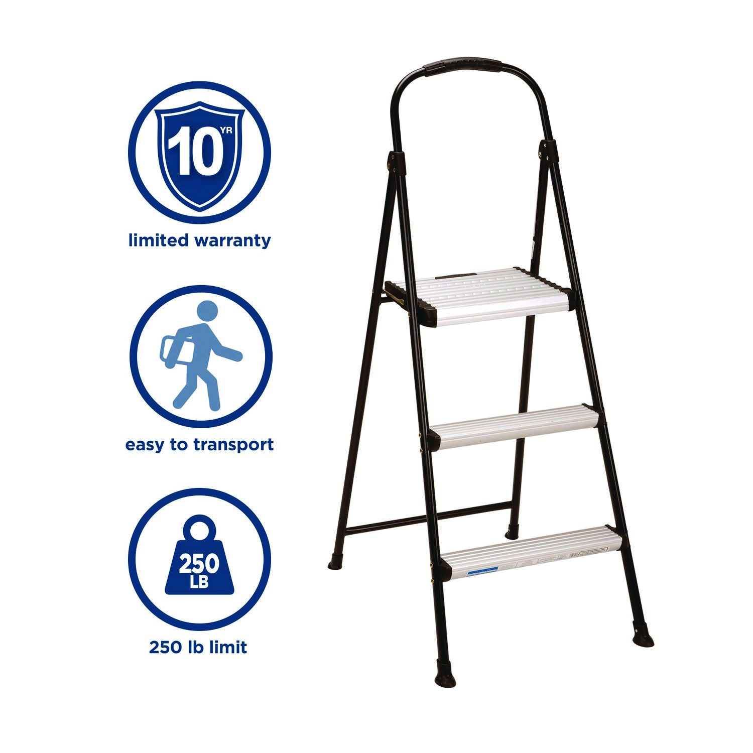 3-Step Stepstool, 250 lb, 28.75″ Tall, 28.35″ Spread, Black/Silver