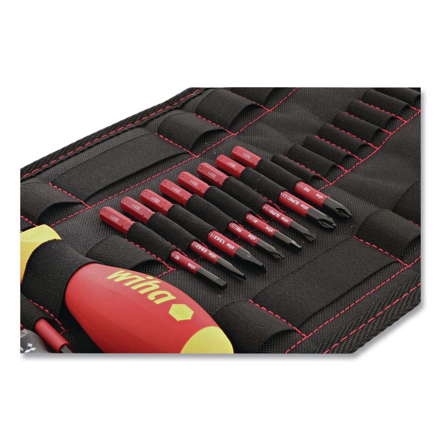 The Wiha® GoBox™ 36 Piece Electronics ESD Precision Micro Bit set contains Slotted, Phillips, Hex, Torx, Pentalobe, Standoff and Y-Type Micro Bits. The PicoFinish ESD Micro Bit handle 4 mm x 3.9 in/100 mm has a finger control rotating cap and meets ESD standard IEC 61340-5-1 for protection from electrostatic discharge. Wiha® Micro Bits consists of premium quality tool steel for strength and feature exact fit precision machined tips for reduced cam-out and have a 4 mm hex drive. The complete compact Micro Bit set comes conveniently stored in a small metal case that fits in your pocket for easy portability. Screwdrivers and Nut Drivers Tool Type: Screwdriver Bits Set; Tip/Socket Type(s): Hex; Phillips; Pentalobe; Standoff; Slotted; Torx; Y-Type; Tip/Socket Size(s): Hex: 0.9 mm, 1.3 mm, 2 mm, 2.5 mm, 3 mm, 4 mm, 1/16″, 5/64″, 1/8″; Phillips: #000, (2) #00, #0, #1; Pentalobe: PL1, PL2, PL3, PL4, PL5, PL6; Standoff: #00; Slotted: 0.8 mm, 1.5 mm, 2 mm, 2.5 mm, 3 mm, 3.5 mm; Torx: T2, T3, T4, T6, T8; Y-Type: #000; Product Packaging: Metal Case.