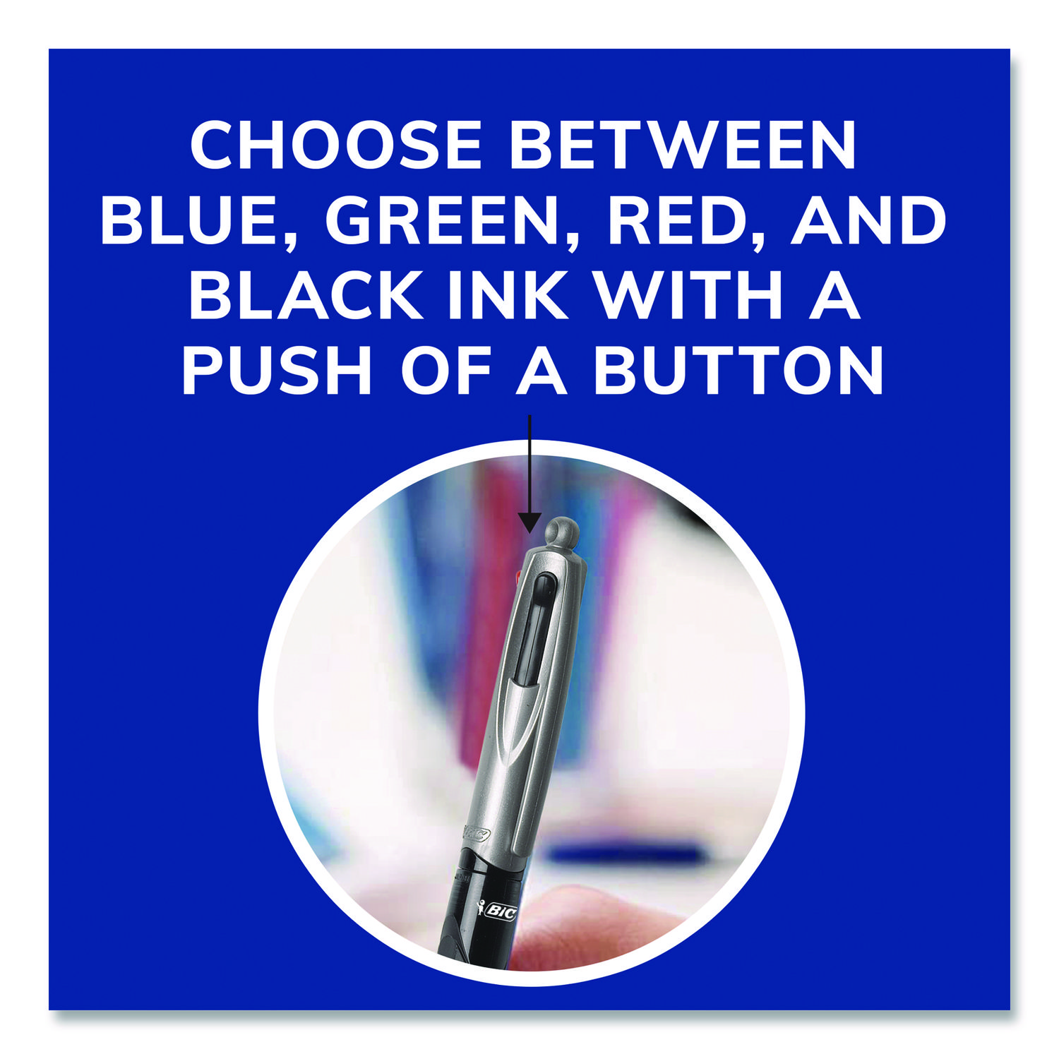 Experience long-lasting ink and enhanced writing comfort with BIC® 4-Color™ Pro Grip Retractable Ball Pens. Perfect for both practical and creative tasks at work, at school and at home, these world-renowned multifunction pens let you choose from four ink colors with a simple click, so there’s no need to carry around multiple pens. Use them for drawing, journaling, color-coding, proofing, editing… just about any writing task. Pro Grip pens also feature a slightly wider barrel and an ergonomic, rubberized grip that feels wonderful in the hand. Compatible with standard BIC® 4-Color™ refills. Pen Sub-Brand & Product Family: 4-Color™ Pro Grip; Pen Type: Multi-Color Ballpoint Pen; Pen Style: Retractable; Pen Tip Type: Conical.