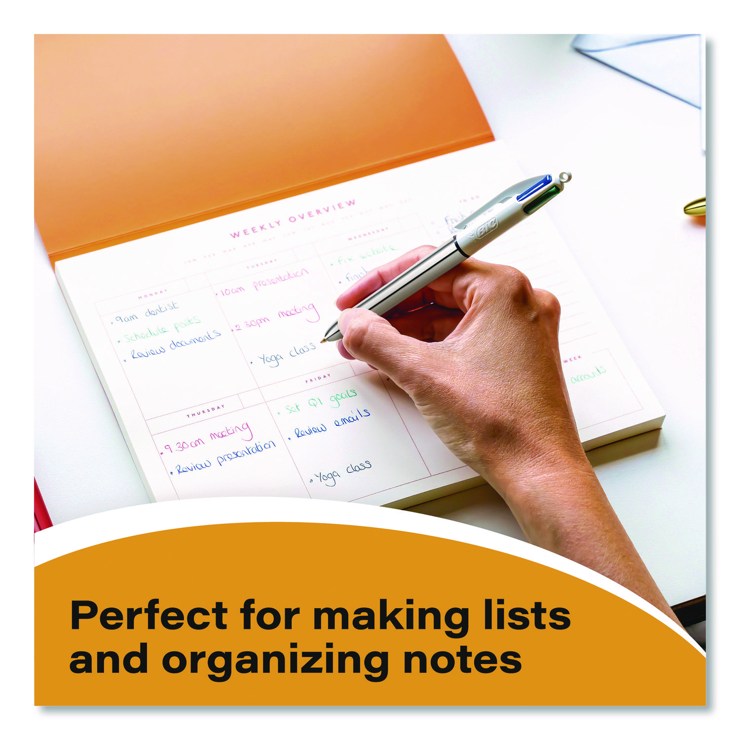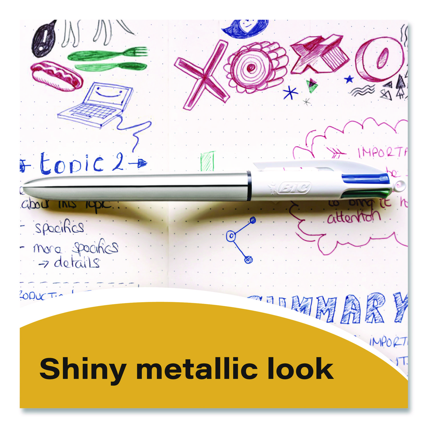 Express yourself in vivid color with the dependable and ultra-convenient BIC® 4-Color Ball Pen. This world-renowned multifunction pen lets you choose from four ink colors with a simple click, so there’s no need to carry around multiple pens. It’s a practical solution that’s ideal for color-coding, organizing notes, editing others’ work and more. Standard ballpoint ink is long-lasting, and the pen is refillable. Pen Sub-Brand & Product Family: 4-Color™ Shine; Pen Type: Multi-Color Ballpoint Pen; Pen Style: Retractable; Pen Tip Type: Conical.