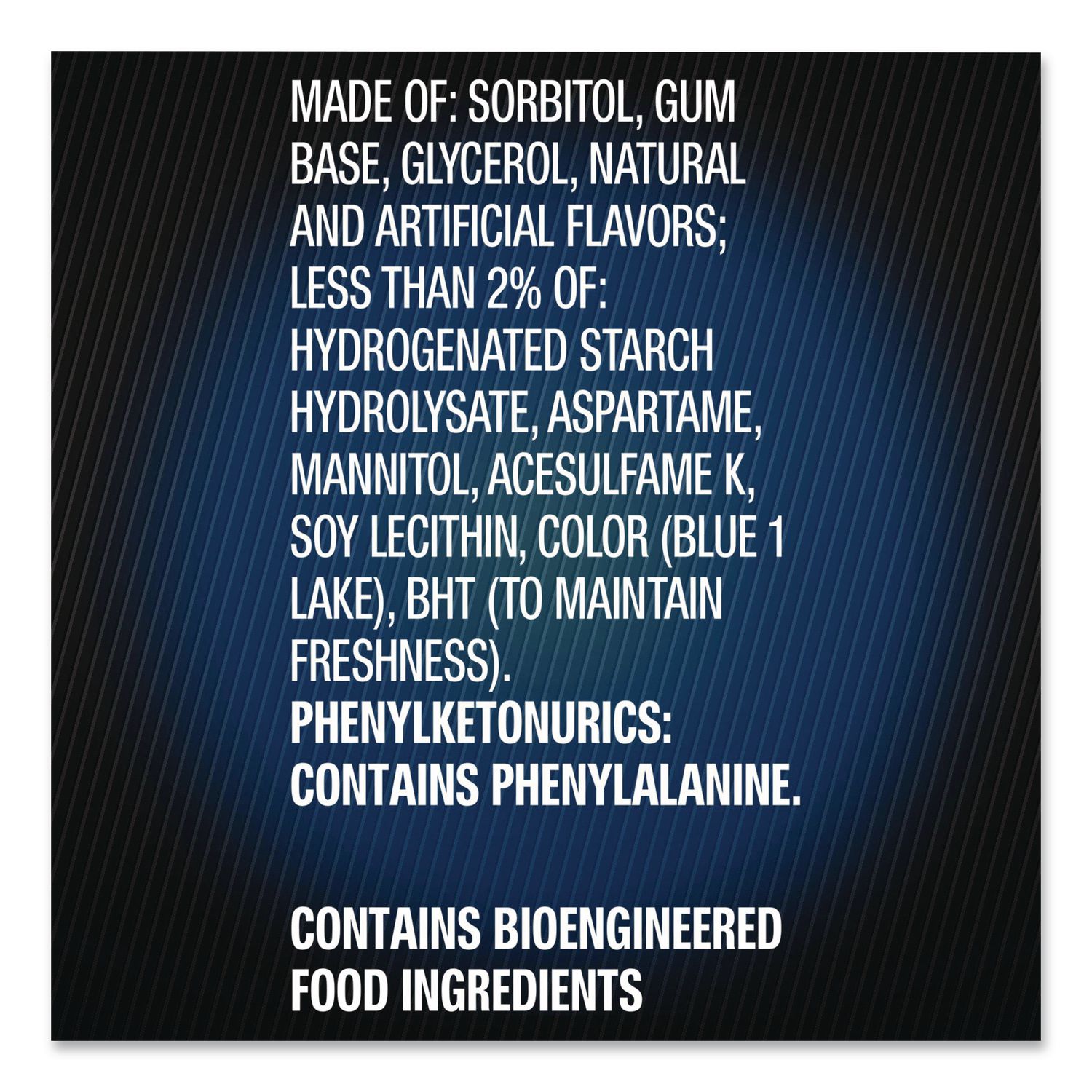 Freshen breath and stimulate your sense of adventure. Each 15-piece pack of gum has plenty invigorating flavor to share with family and friends. Best of all, this chewing gum has no sugar. Food Type: Gum; Flavor: Peppermint Cobalt; Sugar Free: Yes; Vegan: No.