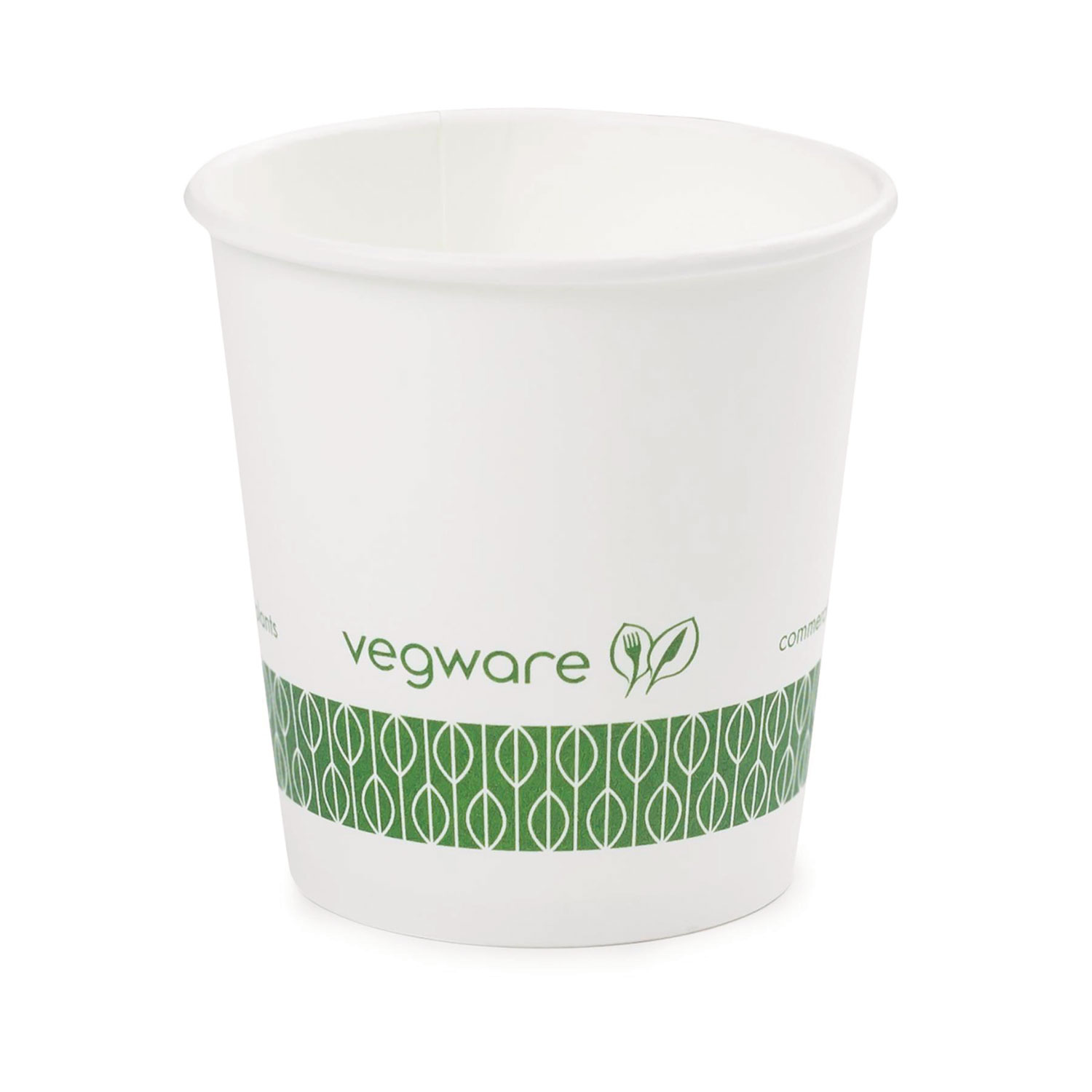 These kraft hot cups, are perfect for espresso or small specialty coffee, hot dipping sauces and any hot sampling. Sustainable board with a plant-based PLA lining. Crisp white, with Vegware messaging in green. Award-winning quality by Vegware, made from plants. Commercially compostable where accepted. Vegware is a trusted brand of plant-based compostable food packaging and its end-of-life solutions. Our products are made from plants using renewable, recycled or reclaimed materials. We hold the deepest set of composability certification in the sector. Our full product range can be commercially composted with food waste where accepted. Independent bodies have certified our products can break down in under 12 weeks in industrial composting facilities. The most widely used composability standards are the European EN13432 and the American ASTM D6400. Cup Type: Hot Cup; Interior Volume Capacity: 4 oz; Material(s): Paper; Material Type: Paper.