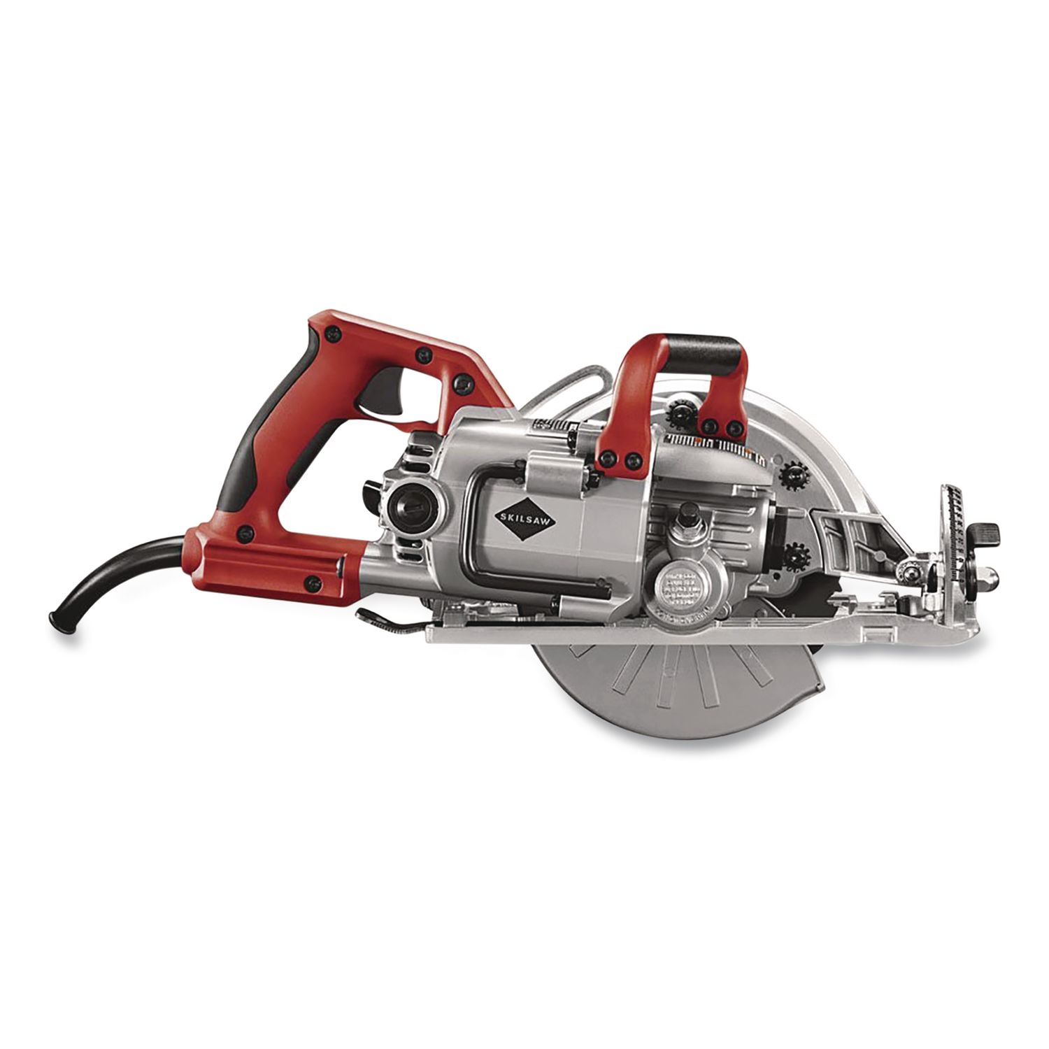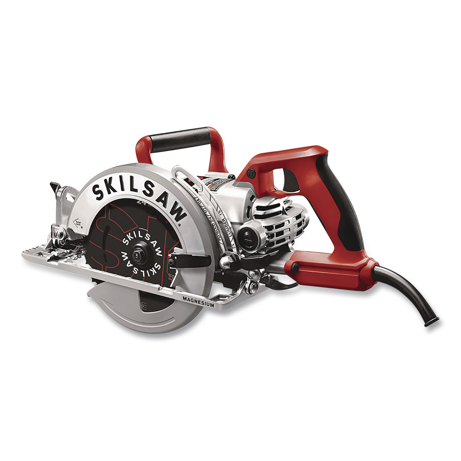 The latest and lightest worm drive continues the long tradition of SKILSAW® quality, rugged durability and consistently exceptional cutting performance. Weighing in at just 11.5 lbs, SKIL’s 7-1/4 in. Lightweight Magnesium Worm Drive Circular Saw with Carbide Blade is 4 lbs less than its predecessor and the lightest worm drive saw on the market. The rugged magnesium housing stays strong but keeps the motor cooler, giving you powerful performance job after job. Legendary SKILSAW® worm drive technology meets the best-in-class Dual-Field™ motor, invented specifically for saws. You get a Diablo blade, too, to round things out. After all, the best saw should get the best blade. Saw Type: Circular; Blade Diameter: 7.25″; Power: 15 A; Handle Color: Orange.