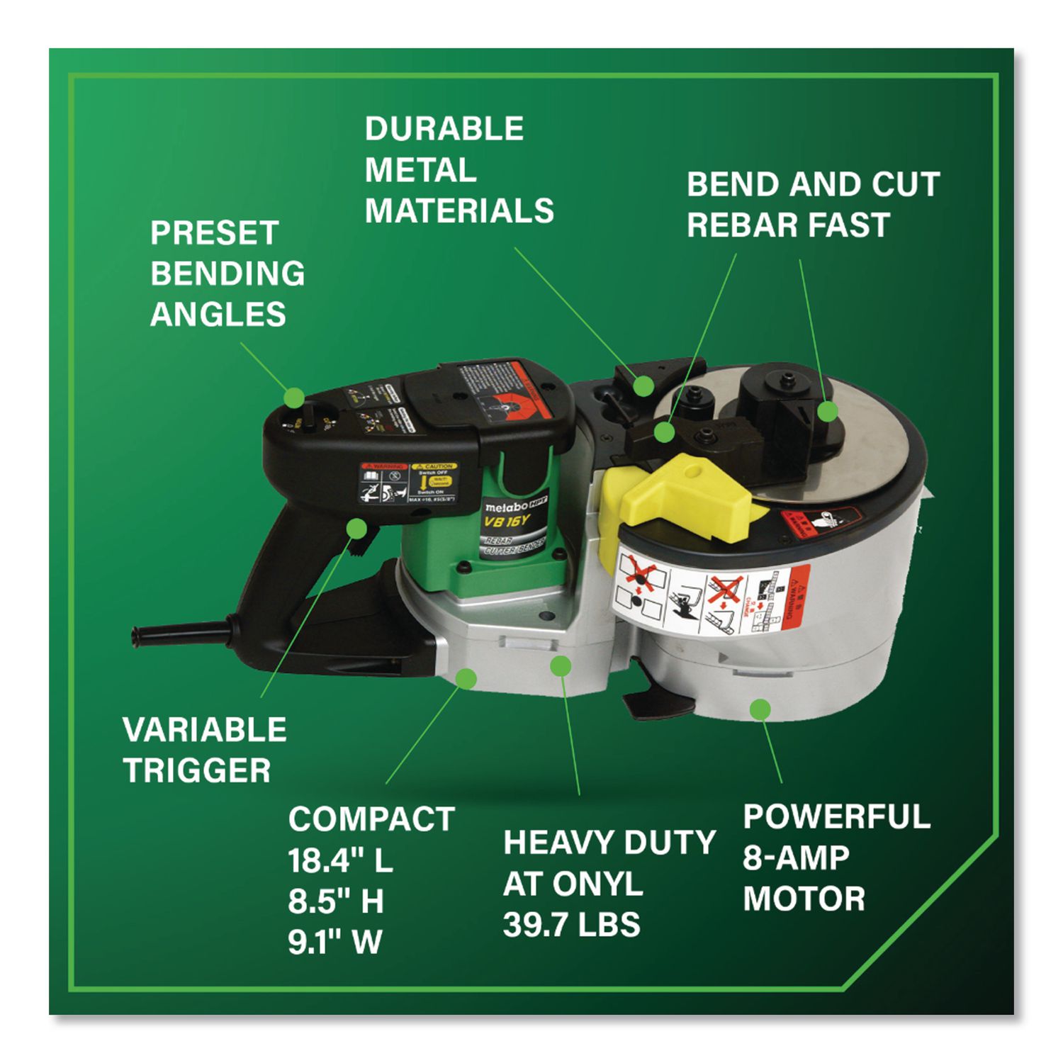 Metabo HPT’s Portable Rebar Cutter and Bender offers jobsite simplicity, precision and portability promising to dramatically reduce the cost of on-site rebar installation. Unlike other machines on the market, this tool can both bend and cut rebar and is easily transportable. The jobsite has now gotten easier for the contractor who needs to be able to quickly and efficiently bend and cut rebar on a daily basis. Pliers and Cutters Tool Type: Rebar Cutter and Bender; Tool Application: Construction; Applicable Material: Rebar; Cutting Capacity: 3/8″; 1/2″; 5/8″.