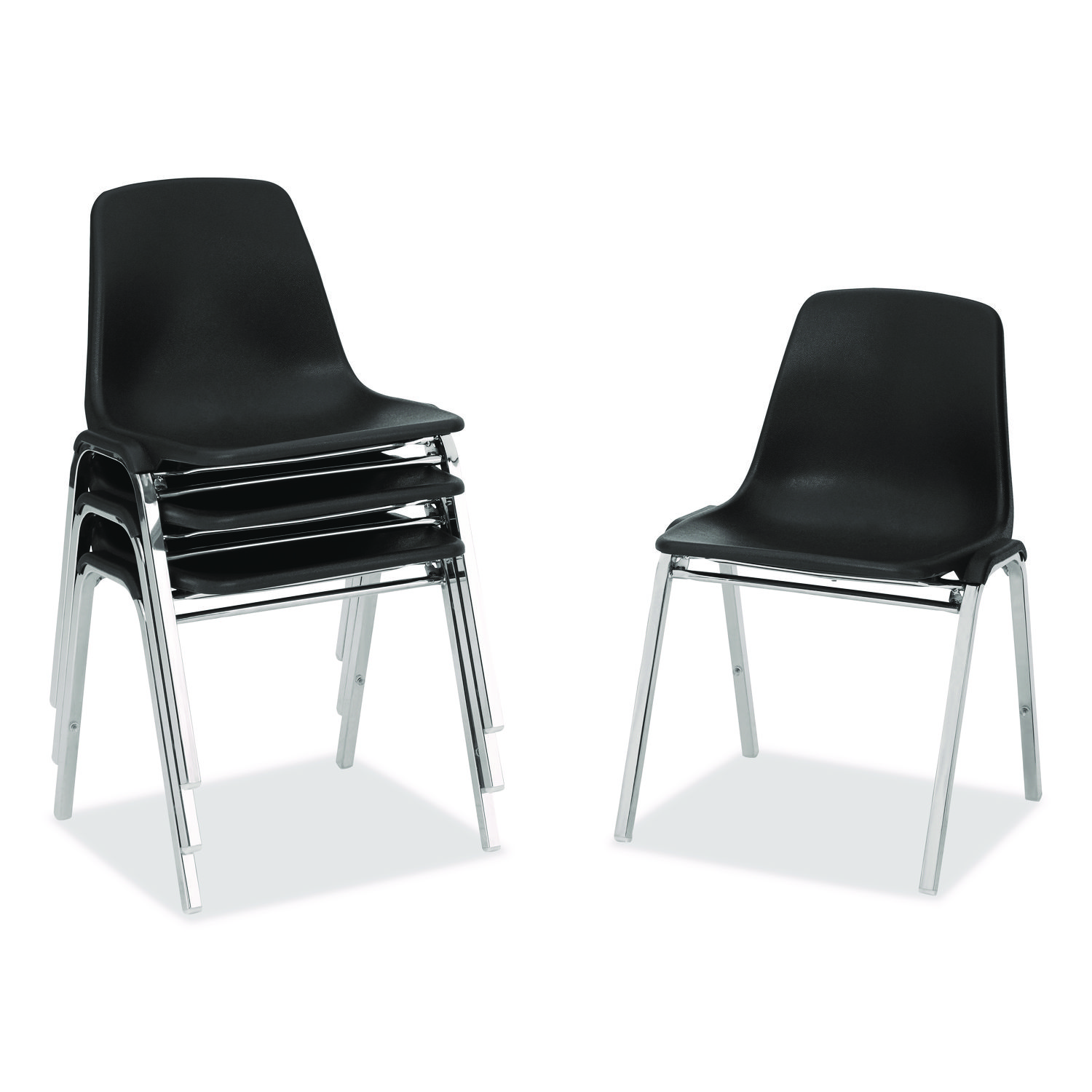 8100 Series Poly Shell Stacking Chair, Supports Up to 500 lb, 18″ Seat Height, Black Seat, Black Back, Chrome Base, 4/Carton