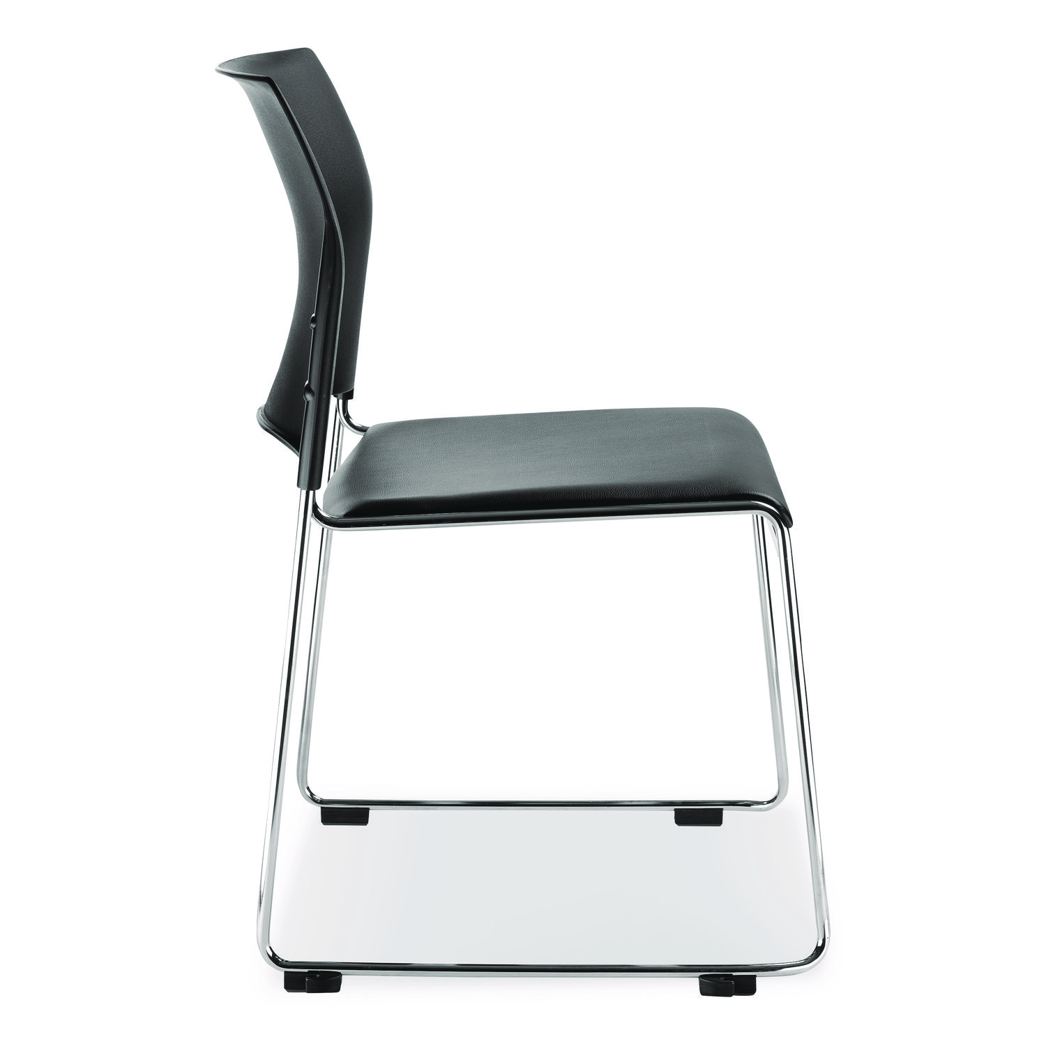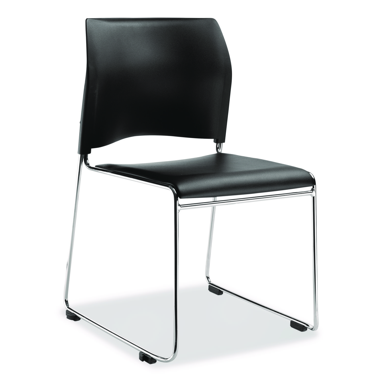 8700 Series Cafetorium Plush Vinyl Stack Chair, Supports Up to 500 lb, 18″ Seat Height, Black Seat/Back, Chrome Base, 4/CT