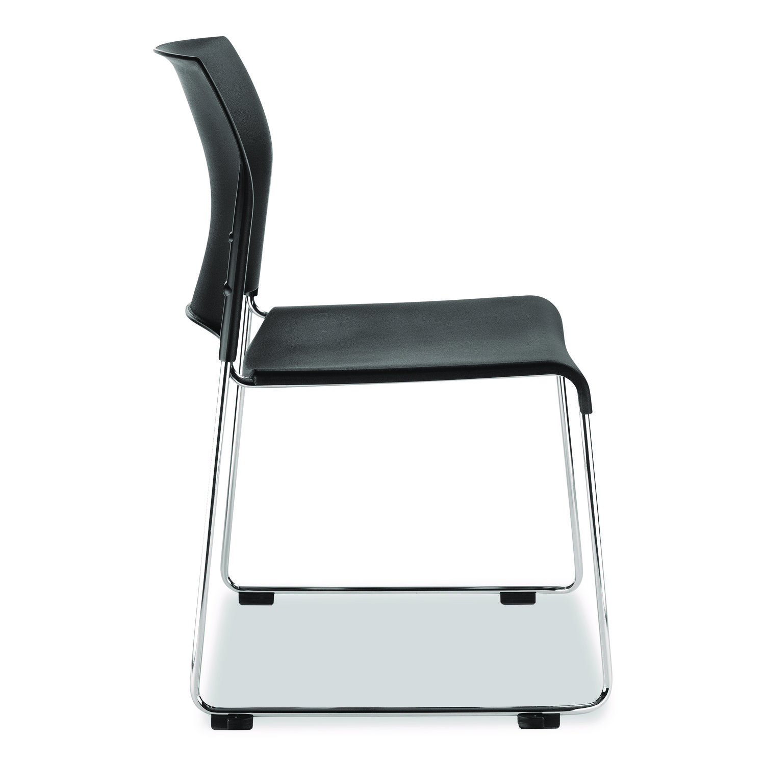The chair blends style, comfort and strength to provide a sleek seating solution to almost any setting. The modern-styled polypropylene plastic seat and back provides ergonomic support and is easy to clean. Weighing just 10 lbs, this chair is certainly no lightweight. Built on a strong 16-gauge frame, this stacker is built to exceed ANSI/BIFMA Standards. TPU floor protector glides allow for use on sensitive floors, and are equipped with built-in gangers making multiple chair setups a snap. Recommended Application Area(s): Breakroom & Foodservice; Conference & Meeting; General Office & Task; Seat Color: Black; Back Color: Black; Color Family: Black.