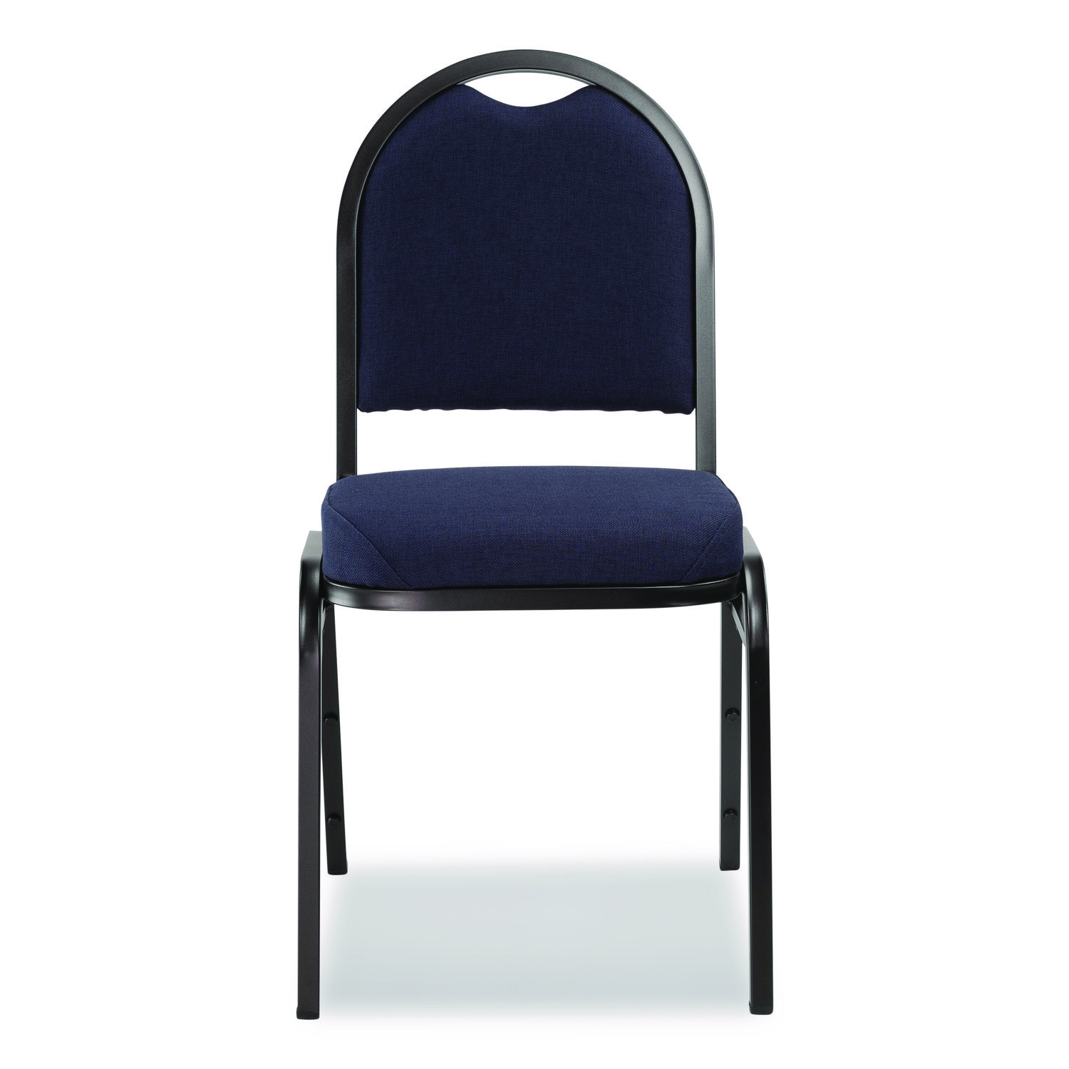 The 9200 Series Premium Upholstered dome-back stack chair is durable and classy enough to use in your busiest social setting, be it a dining room or corporate banquet hall. It features a strong square, 18-gauge steel frame plus an under-seat H-shaped brace for extra support. The seat features supremely comfortable and spacious 2″-thick high-density foam padding and a waterfall-style edge. MDF core within both the seat and rounded backrest which has a built-in handle for easy moving and stacking. Fortifying stacking bars and 12 plastic bumpers protect the powder-coated paint finish from scratches when the chair is stacked. Recommended Application Area(s): Breakroom & Foodservice; Conference & Meeting; General Office & Task; Seat Color: Midnight Blue; Back Color: Midnight Blue; Color Family: Blue.