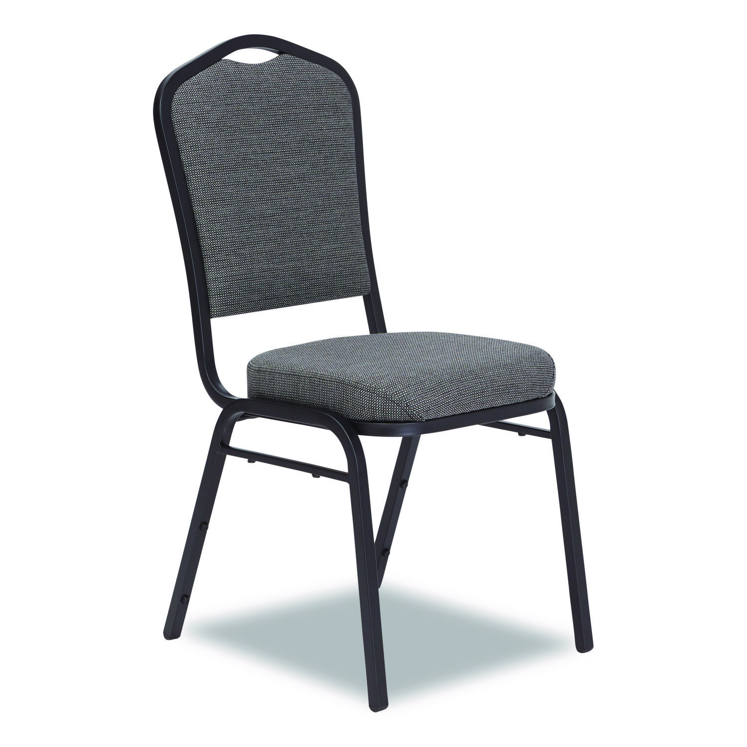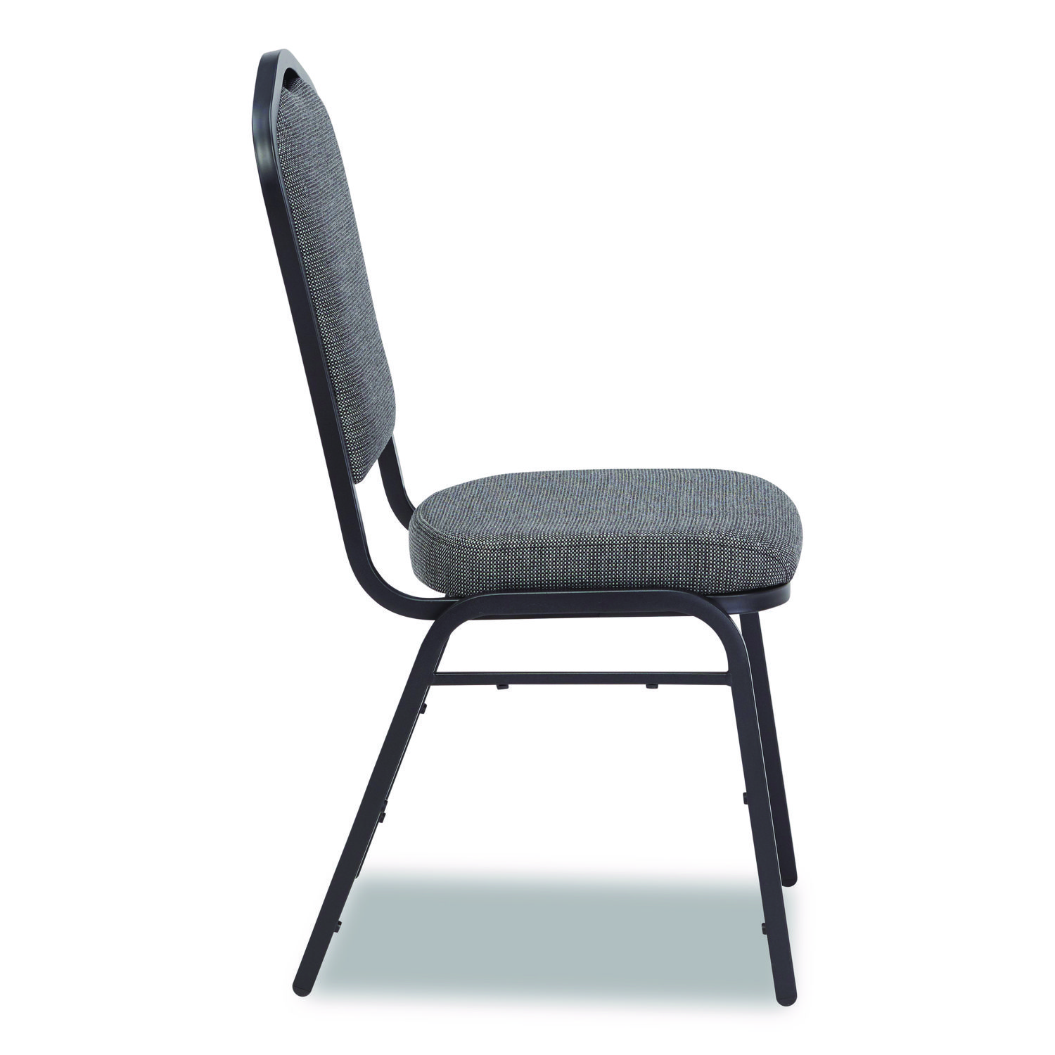 The 9300 Series Deluxe Upholstered Sillouette stack chair is durable and classy enough to use in your busiest social setting, be it a dining room or corporate banquet hall. The seat features a strong square 18-gauge steel frame plus an under-seat H-shaped brace for extra support. The seat features supremely comfortable and spacious 2″-thick high-density foam padding with institutional grade upholstery and a waterfall-style edge. MDF core within both the seat and crown-style backrest which has a built-in handle for easy moving and stacking. Fortifying stacking bars and twelve plastic bumpers protect the powder-coated paint finish from scratches when the chair is stacked. Recommended Application Area(s): Breakroom & Foodservice; Conference & Meeting; General Office & Task; Seat Color: Natural Graystone; Back Color: Natural Graystone; Color Family: Gray.