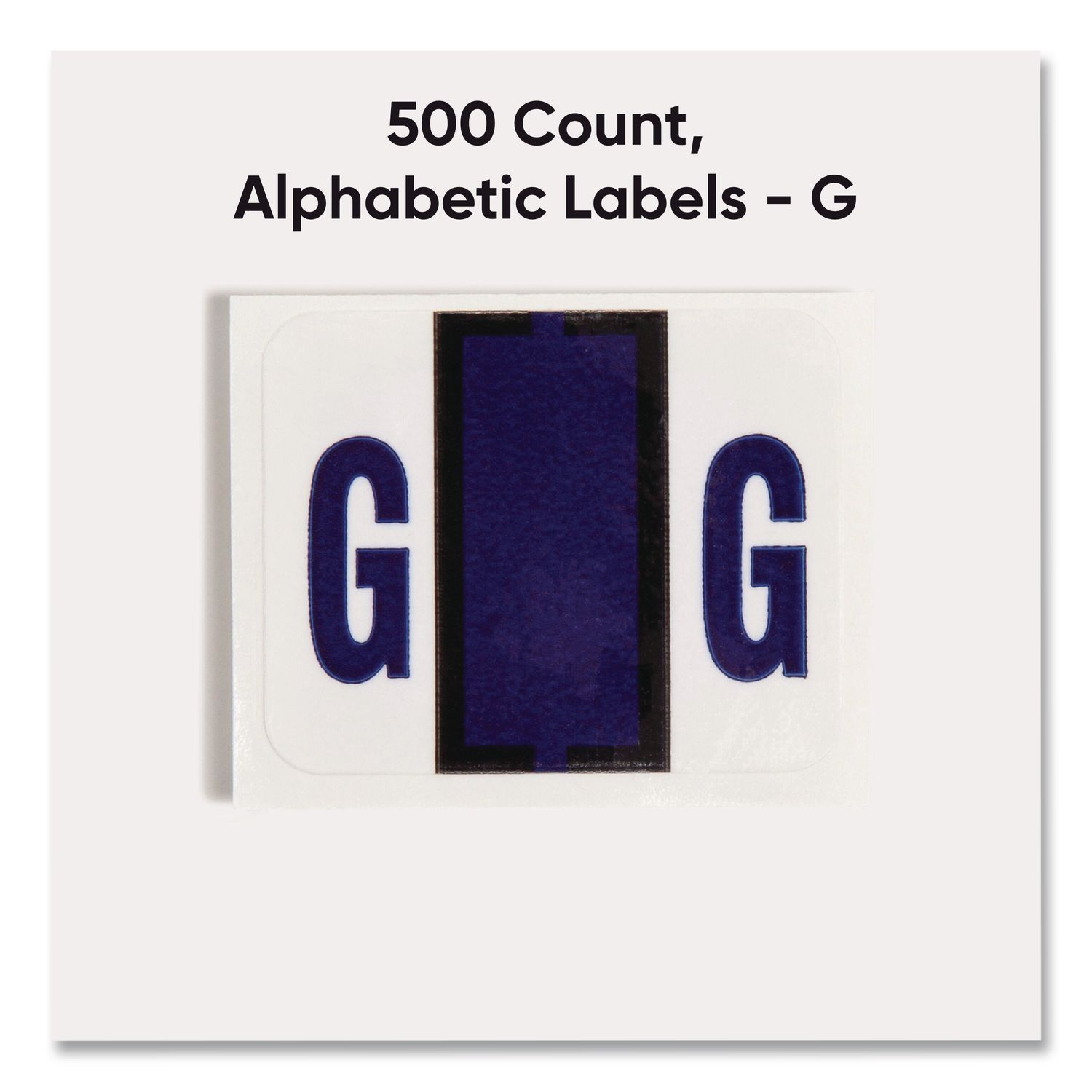 Keep files organized at a glance with these alphabetic labels that feature a wraparound solid color bar and a colored character printed on a white background. Colors are compatible with end tab systems using the bar-style format. Convenient dispensing box for easy peel off and application. Includes 500 labels per roll. Compatible with TabĀ® Products 1283 series alphabetical labels. Shape: Rectangular; Label Size – text: 1 x 1.25; Label Color(s): White; Color Family: White.