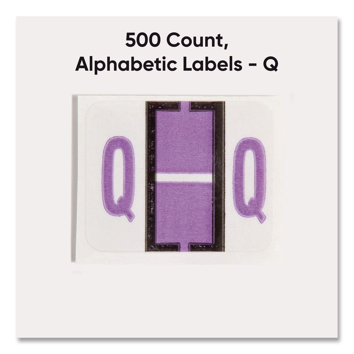 Keep files organized at a glance with these alphabetic labels that feature a wraparound solid color bar and a colored character printed on a white background. Colors are compatible with end tab systems using the bar-style format. Convenient dispensing box for easy peel off and application. Includes 500 labels per roll. Compatible with TabĀ® Products 1283 series alphabetical labels. Shape: Rectangular; Label Size – text: 1 x 1.25; Label Color(s): White; Color Family: White.