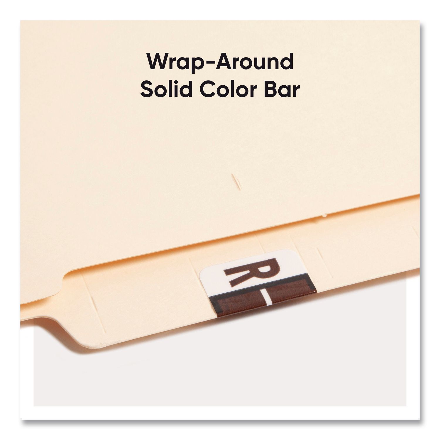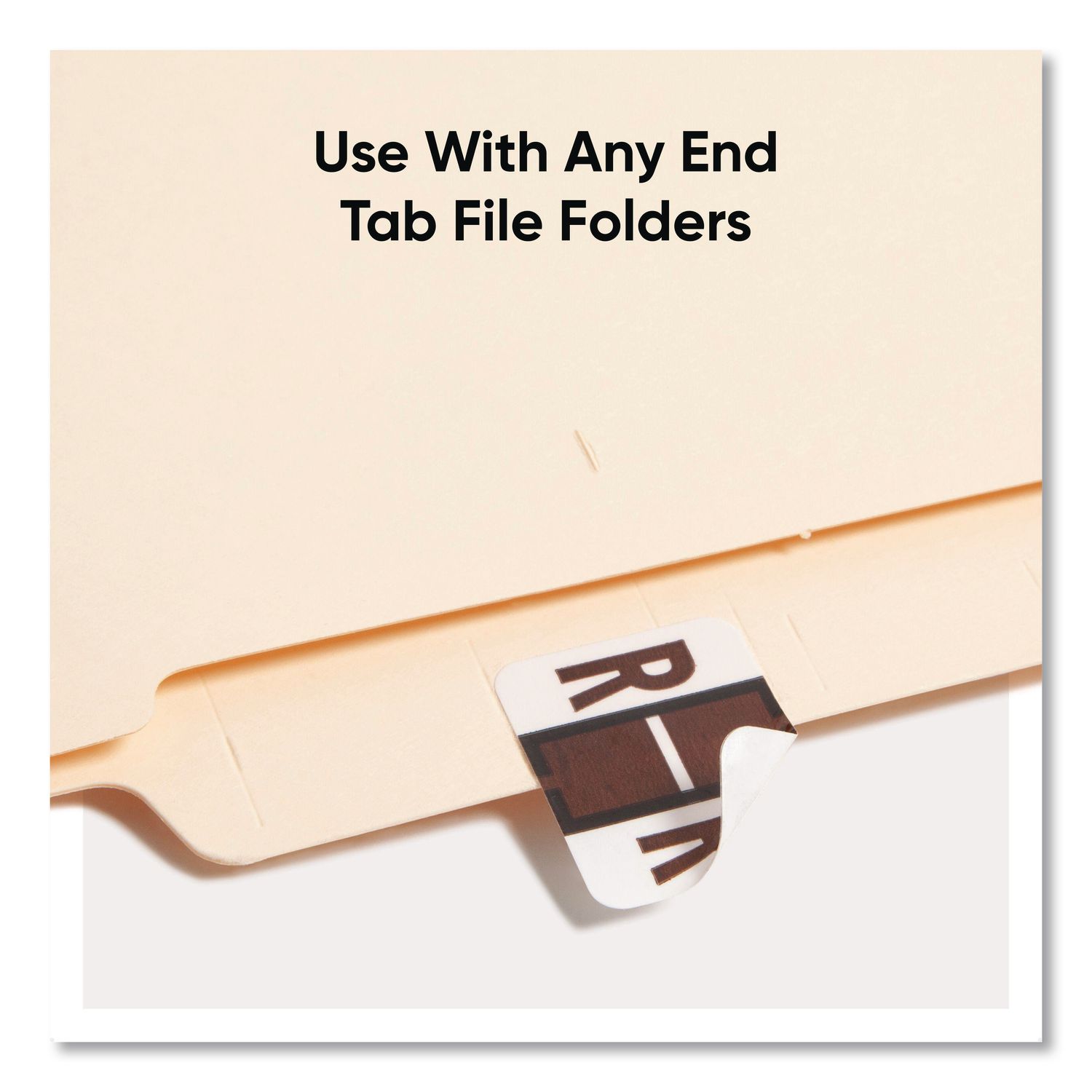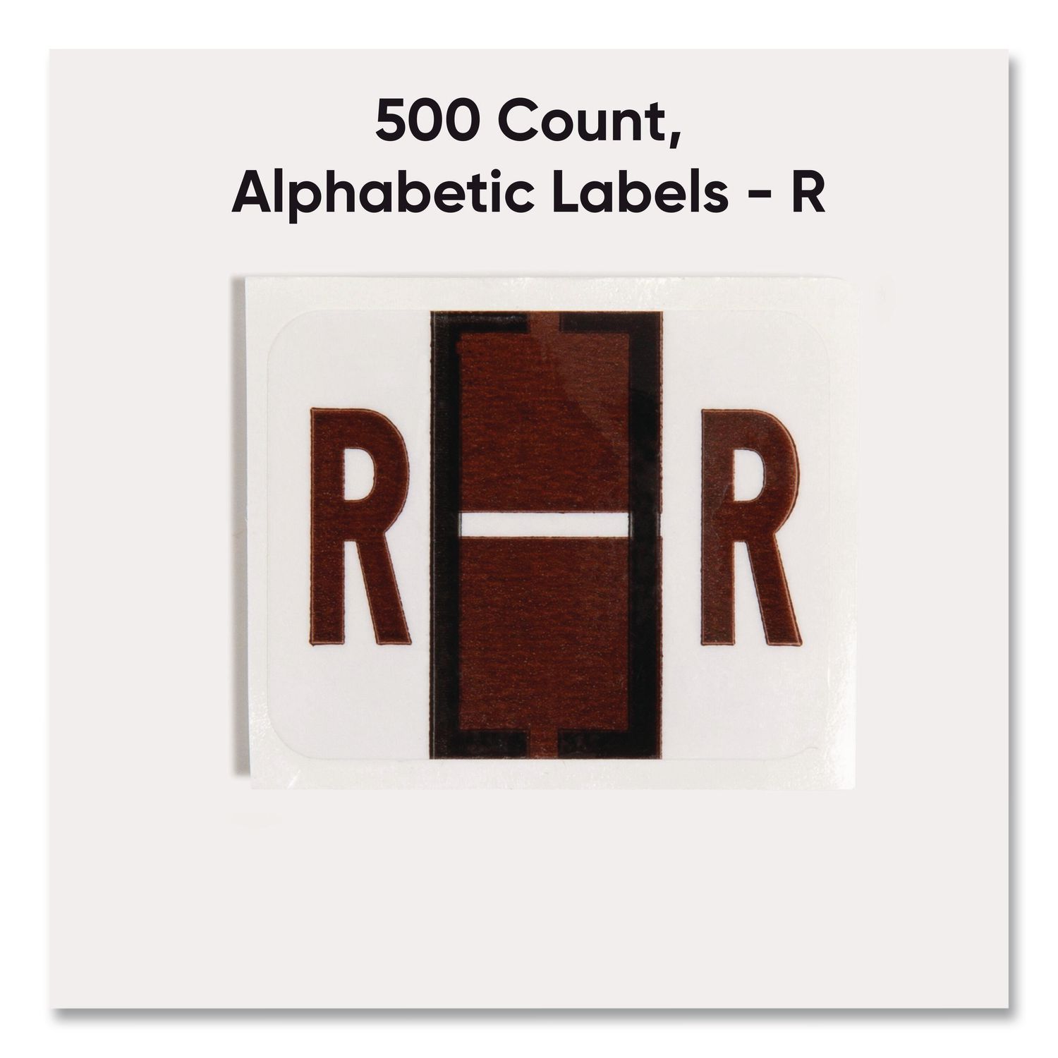 Keep files organized at a glance with these alphabetic labels that feature a wraparound solid color bar and a colored character printed on a white background. Colors are compatible with end tab systems using the bar-style format. Convenient dispensing box for easy peel off and application. Includes 500 labels per roll. Compatible with TabĀ® Products 1283 series alphabetical labels. Shape: Rectangular; Label Size – text: 1 x 1.25; Label Color(s): White; Color Family: White.