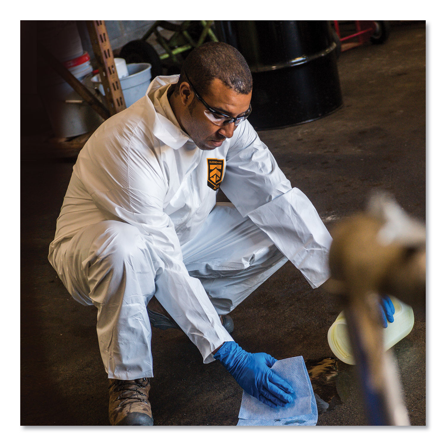 Features Patented Reflex* design, which offers excellent fit (with elastic back) and freedom of movement. The material is strong and abrasion resistant, and filters out many water-based liquids and dry particles. Elastic Wrist and Ankles, 1″ Flap. Apparel Type: Coverall; Material(s): MICROFORCE* Barrier SMS Fabric; Color(s): White; Color Family: White.