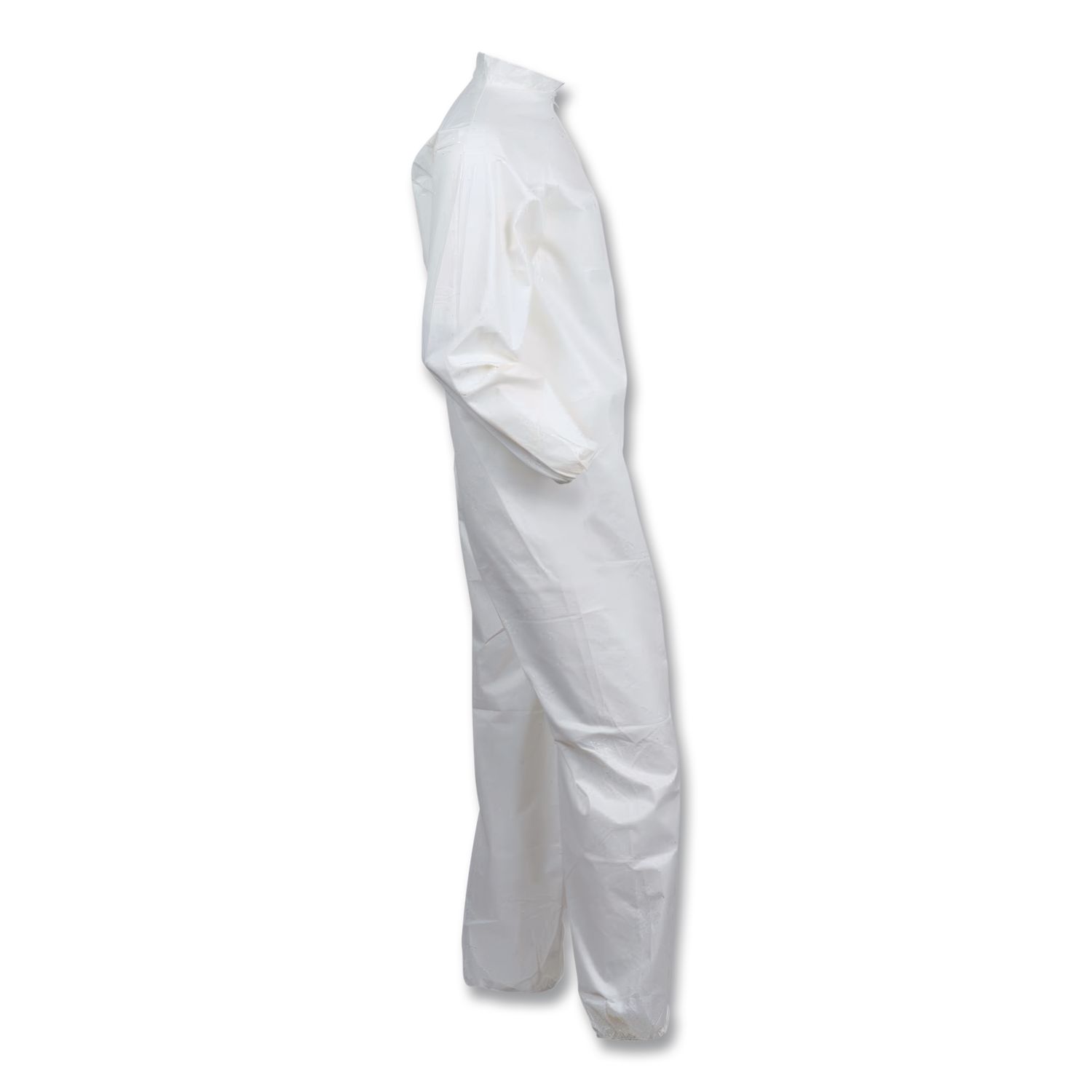 KleenGuard™ Personal Protective Equipment (PPE) enables rather than inhibits allowing for maximum productivity and safety for you and your employees. When your workers are in nonstop contact with liquid splashes and particles, KleenGuard™ A40 Liquid and Particle Protection Coveralls are a great addition to offer your team comfortable protective clothing. Features to provide more protection include the seamless front (for primary exposure area) and 1 inch zipper flap. They feature REFLEX design, which offers excellent fit and comfort (with elastic in the back) and freedom of movement. Made of breathable, microporous film to keep out debris, non-hazardous liquid chemicals and dry particulates, the KleenGuard™ A40 material gives your employees a better liquid barrier and a better particulate barrier than the leading competitor. These coveralls with hood pass NFPA 99 for antistatic materials, and pass ASTM F1670 testing for penetration of blood and bodily fluids. Popular industries using this product include liquid handling, aviation, pharmaceutical manufacturing, general manufacturing and so much more. Making the right Personal Protection choice is difficult. Perform with distinction with KleenGuard™ Personal Protective Equipment (PPE). Open Wrists and Ankles. Apparel Type: Coverall; Material(s): Microporous Film Laminate Fabric; Color(s): White; Color Family: White.