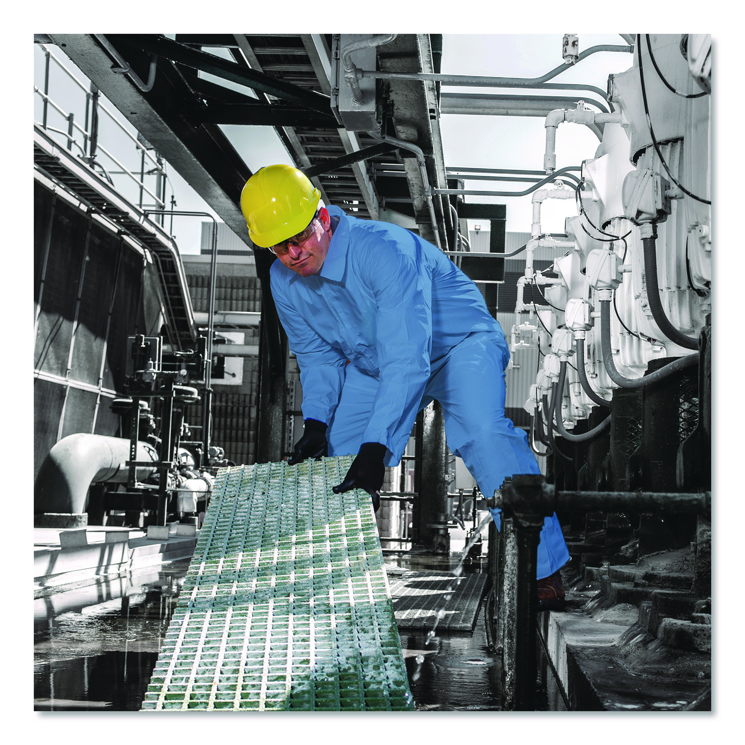Designed for protection against non-hazardous and hazardous dust in areas where exposure to sparks is possible. Breathable material, with a high moisture vapor transmission rate, to be worn comfortably over flame-resistance garments. Apparel Type: Coverall; Color(s): Blue; Color Family: Blue; Size Group: 4X-Large.