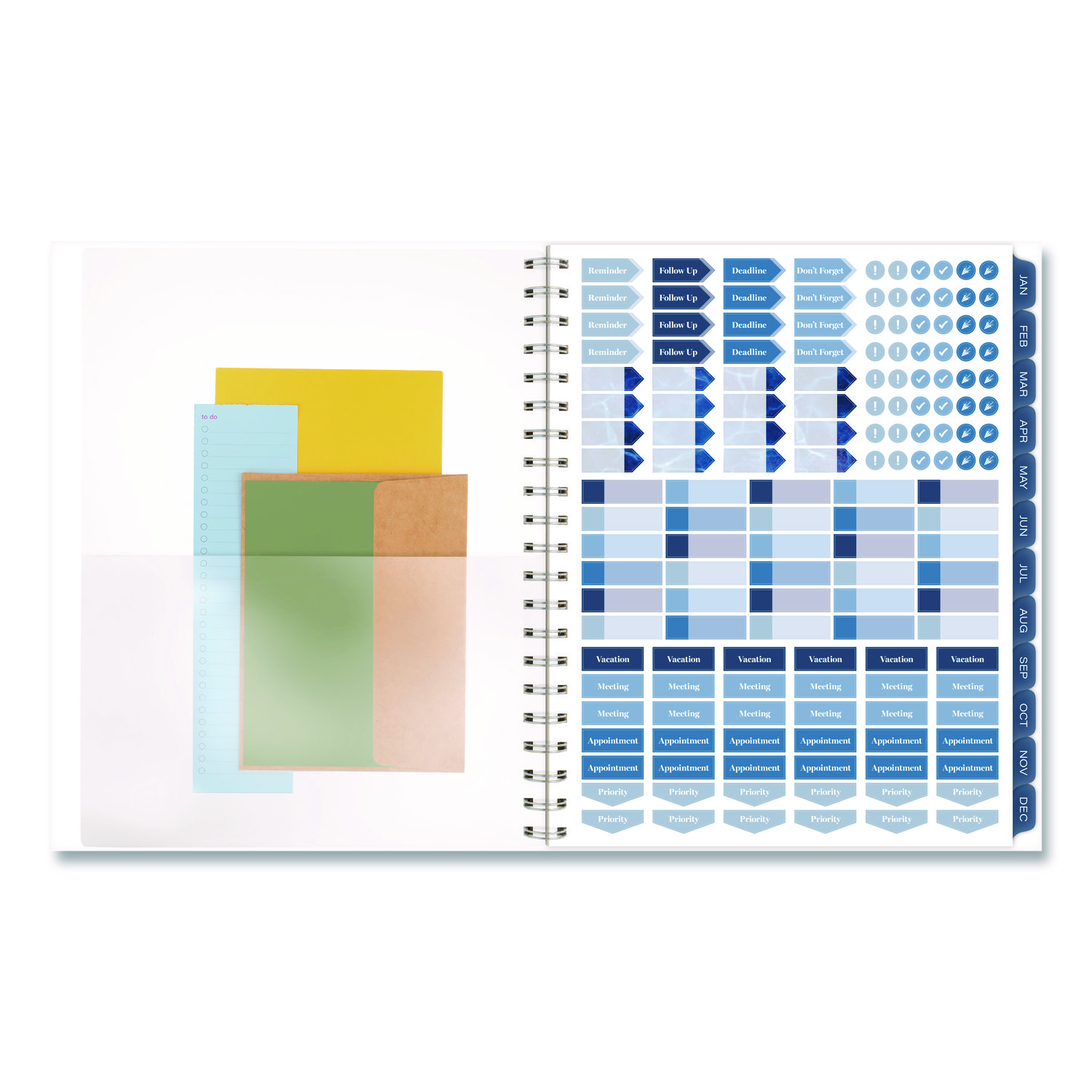 | Separate Sections: | (2) Future Planning Pages; Holiday List; (5) Note-Taking Pages; Sticker Sheet; Three-Year Reference Calendar |