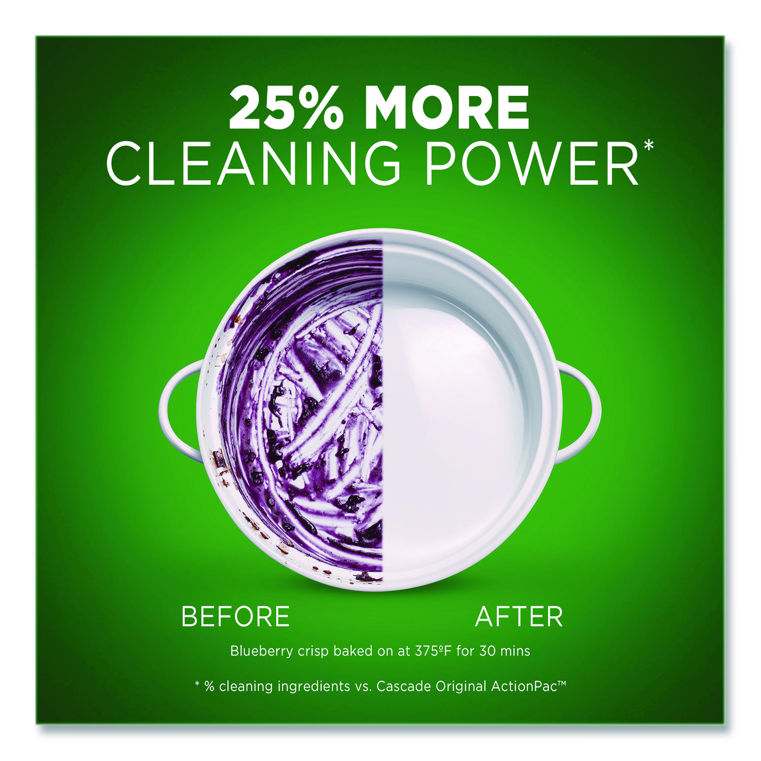 Cascade ActionPacs dishwasher detergent powers away greasy residue for sparkling dishes. That’s because every ActionPac combines the scrubbing power of Cascade and the grease-fighting power of Dawn dishwashing liquid to leave your dishes virtually spotless. Cascade ActionPacs are conveniently premeasured with no finicky wrapping-simply load your dishwasher, pop in an ActionPac, and go! Complete® ActionPacs®—Needs no pre-wash. Application: Machine Dishwashing; Applicable Material: Ceramics; Enamel; Fiberglass; Glass; Metal; Plastic; Dirt Types: Cooked-On Grease; Food Particles; Oils; Organic Matter; Soil; Scent: Fresh.