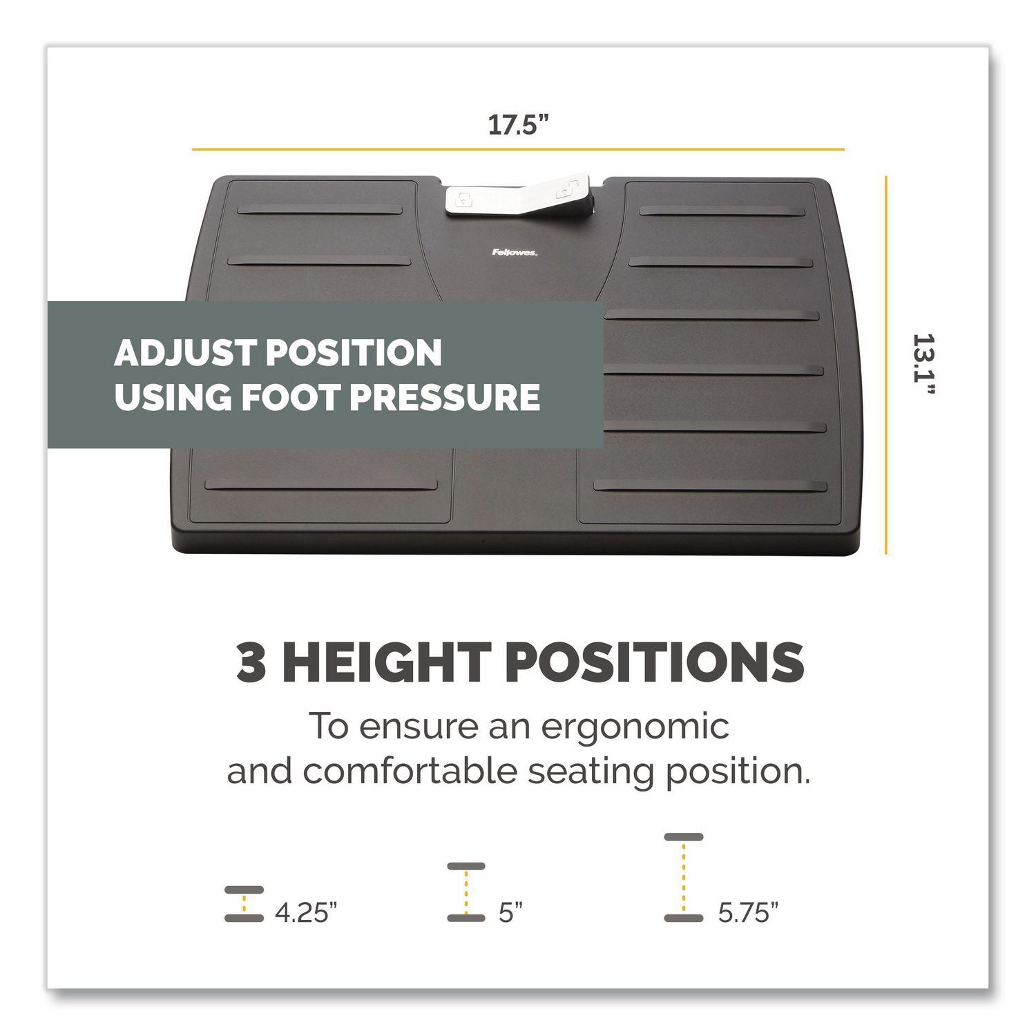 Adjustable 3-Height Footrest, Tilt Lock, 17.5w x 13.13d x 4.38 to 5.63h, Black/Silver