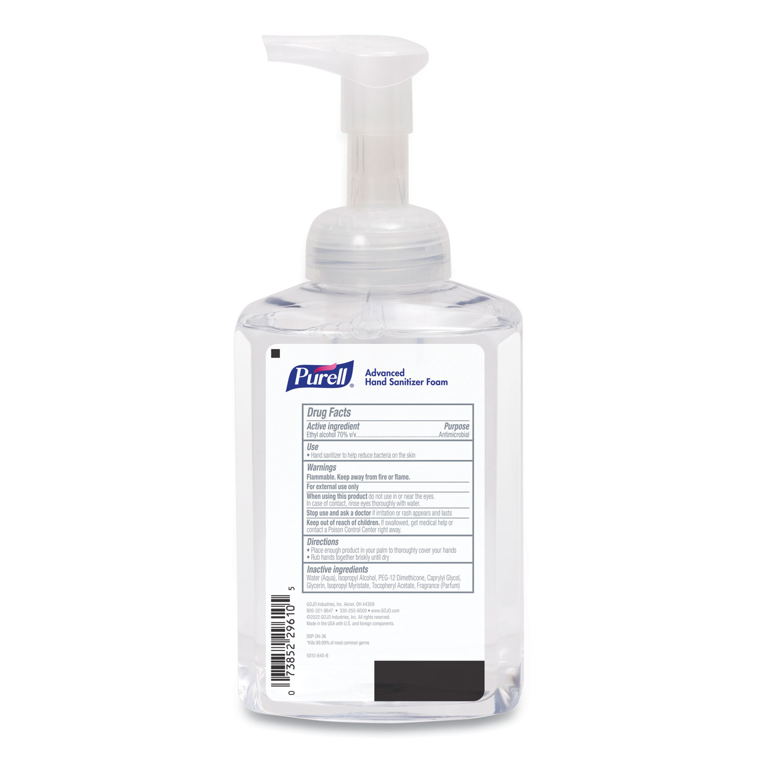 Promote well-being with PURELL Advanced Hand Sanitizer Foam, an effective solution capable of killing 99.99% of germs that may cause illness. Enhanced with a nourishing blend of four skin conditioners, PURELL Advanced Hand Sanitizer Foam is clinically proven to maintain skin health. Additionally, the formula is dye-free and hypoallergenic. Hand Sanitizers Type: Foam; Color(s): Clear; Volume Capacity: 515 mL; Product Packaging: Pump Bottle.