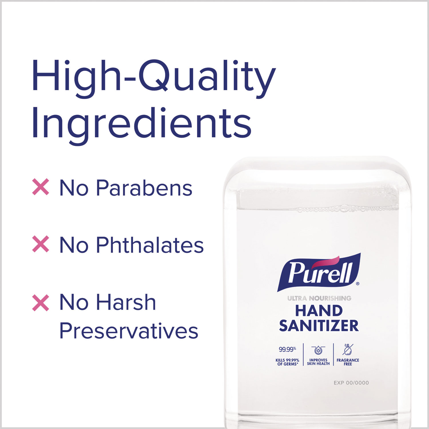 PURELL Advanced Hand Sanitizer ULTRA NOURISHING™ Foam is clinically proven to help improve skin condition in just five days Enhanced with a blend of moisturizers and antioxidants. America’s No. 1 brand, PURELL Advanced Hand Sanitizer kills 99.99% of germs that may cause illness. It’s no wonder no brand is more trusted in hospitals. Free of dyes, triclosan, parabens, phthalates, and preservatives, PURELL hand sanitizer is made with our high-quality ethyl alcohol. This 1200 mL refill bottle is made with recyclable plastic components. The collar and alkaline AA battery easily pull apart making it easy to recycle and reduce product waste. For PURELL ES10 Automatic Hand Sanitizer Dispensers. Hand Sanitizers Type: Foam; Color(s): Clear; For Use With: PURELL ES10 Automatic Hand Sanitizer Dispensers; Volume Capacity: 1,200 mL.