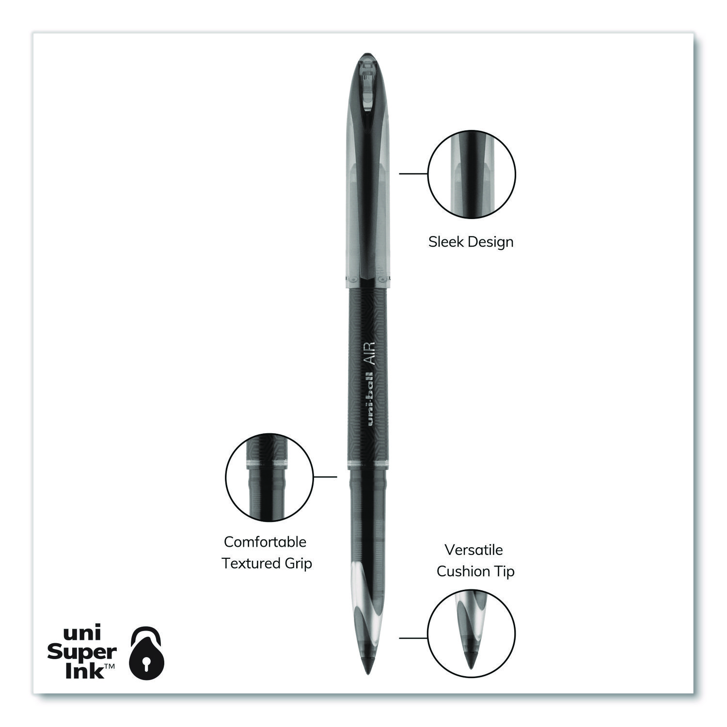 Enjoy a smooth writing experience with AIR Porous Point Rollerball Pens from uni-ball featuring a 0.7 mm medium point. These pens have an innovative sleek tip that writes at any angle while producing crisp, skip-free lines. The porous point rollerball pens adapt to your personal writing grip style, adjusting line widths depending on the pressure of your hand as you write. Combining the fluid ink of a marker with the durability of a rollerball, these pens deliver a smooth writing experience while ensuring your documents are easy to read. Suitable for a variety of writing tasks including journaling, scrapbooking or sketching, these pens glide easily over paper, delivering vibrant marks and lines. uni Super Ink technology ensures the ink adheres strongly to the paper, offering protection from fraud, fading and water. A glass-like plastic clip gives these fine marking pens a stylish look while adding a touch of convenience. Experience effortless writing the moment the pen hits the paper with AIR’s versatile cushion tip technology and fluid, free flowing ink. Pen Sub-Brand & Product Family: AIR™ Porous; Pen Type: Rollerball Pen; Pen Style: Stick; Pen Tip Type: Conical.