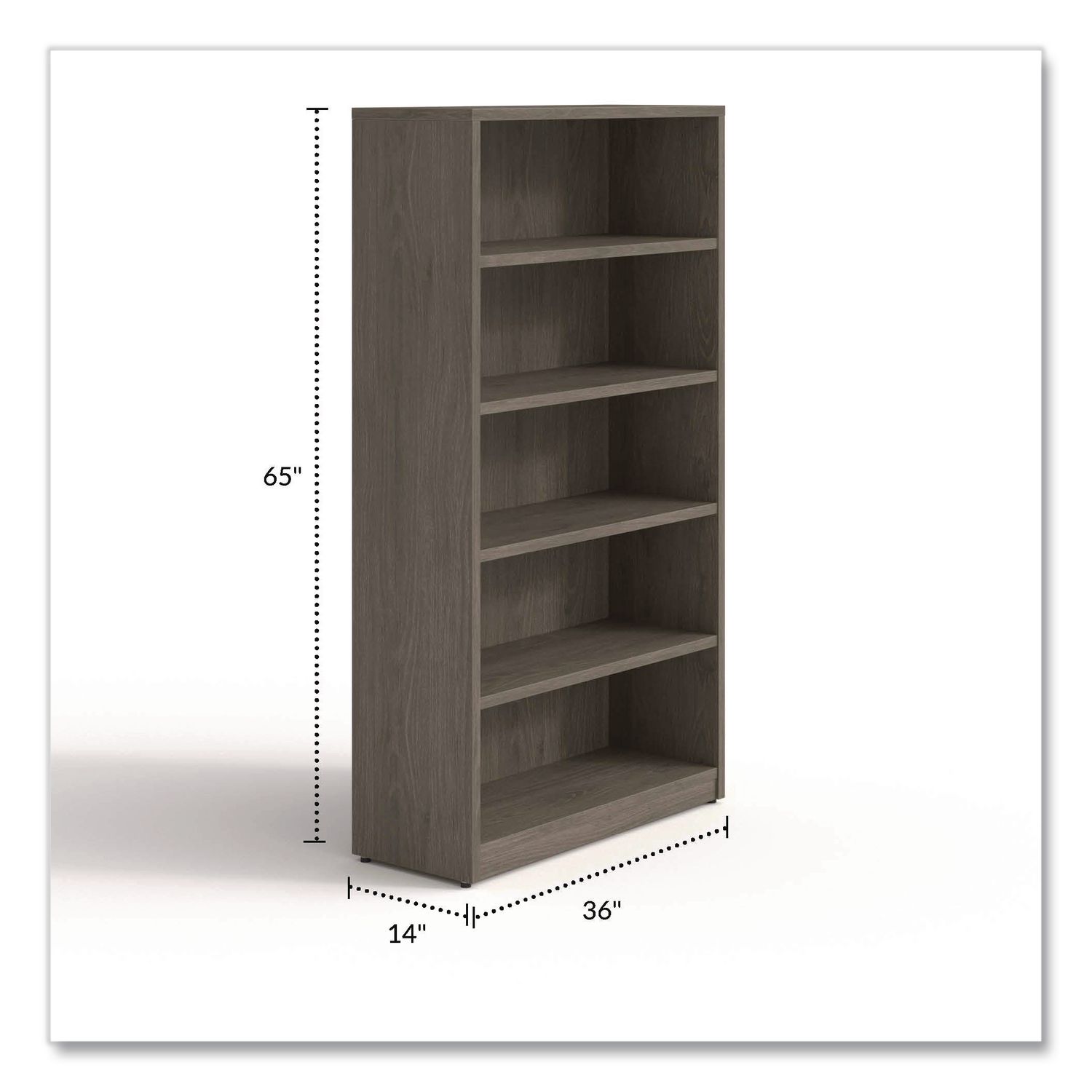 The Alera Seville Series Bookcase is the perfect solution for organizing your office or home while adding a touch of contemporary style. Featuring spacious shelves, some adjusatable, this bookcase provides ample storage for books, binders, decorative items, and office supplies. The professional appearance makes it a versatile addition to any setting, whether it’s a corporate office, home library, or shared workspace. Constructed from high-quality particleboard, the bookcase is built to last. The durable laminate finish not only adds a sophisticated look but also offers superior protection against daily wear and tear. The high-performance laminate resists impacts, scratches, and burns, ensuring the bookcase remains in excellent condition even after extended use. For added convenience, the bookcase comes with adjustable glides to ensure stability on uneven floors, preventing wobbling and maintaining balance even when fully loaded with items. This makes it ideal for different office environments or home setups. As part of the Alera Seville Series, this bookcase is designed to pair seamlessly with other pieces from the collection, helping you create a cohesive and stylish office arrangement. It can easily complement other office furniture or room decor. Five-Shelf—Four adjustable. Color(s): Walnut; Color Family: Walnut; Material(s): Melamine; Wood; Number of Shelves: 5.