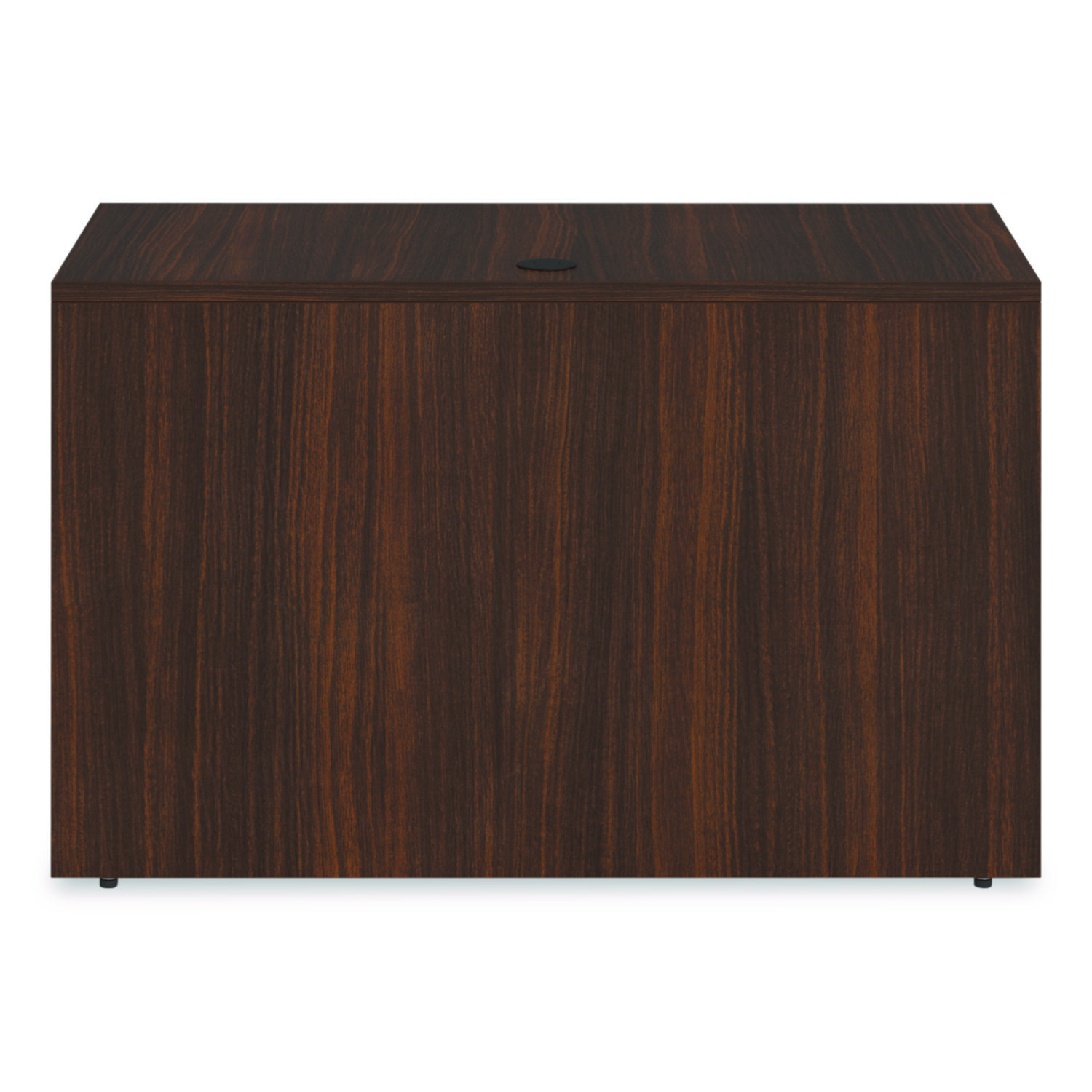 A versatile addition to your office setup, designed to pair seamlessly with pedestal desks or credenzas for creating efficient L-shaped or U-shaped workstation configurations. Made from durable particleboard, this extension features a band edge design that adds strength and durability to its construction. The surface is finished with high-quality laminate that not only offers a sleek, professional look but also provides excellent resistance to impacts and burns, ensuring long-lasting use in busy office environments. Equipped with adjustable glides that allow for easy leveling on uneven surfaces, ensuring stability and comfort. Color(s): Mahogany; Color Family: Mahogany; Overall Width: 48″; Overall Depth: 24″.