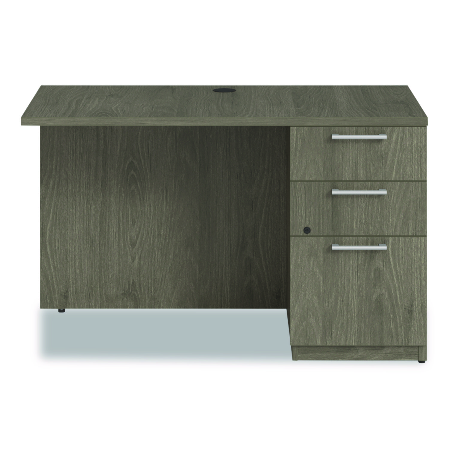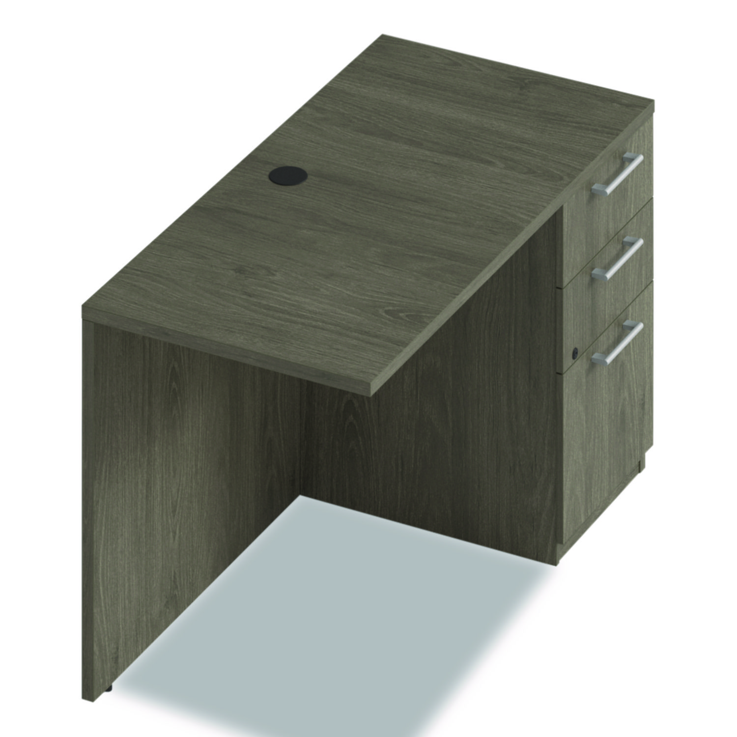 Introducing the Alera Seville Series Desk Return with Pedestal. The return is a versatile addition to your office setup, designed to pair seamlessly with pedestal desks or credenzas for creating efficient L-shaped or U-shaped workstation configurations. Made from durable particleboard, this extension features a band edge design that adds strength and durability to its construction. The surface is finished with high-quality laminate that not only offers a sleek, professional look but also provides excellent resistance to impacts and burns, ensuring long-lasting use in busy office environments. Equipped with adjustable glides that allow for easy leveling on uneven surfaces, ensuring stability and comfort. Return Orientation: Right; Color(s): Walnut; Color Family: Walnut; Pedestal Count: 1.