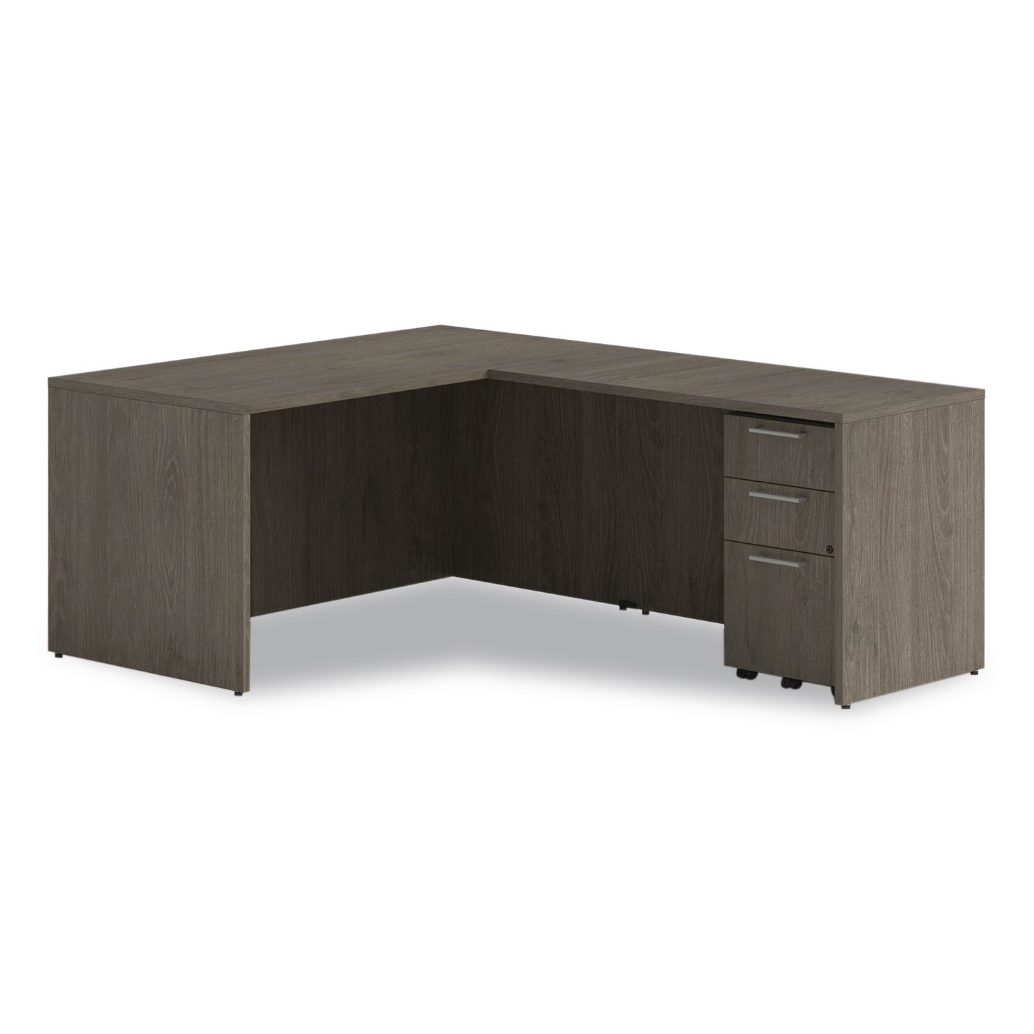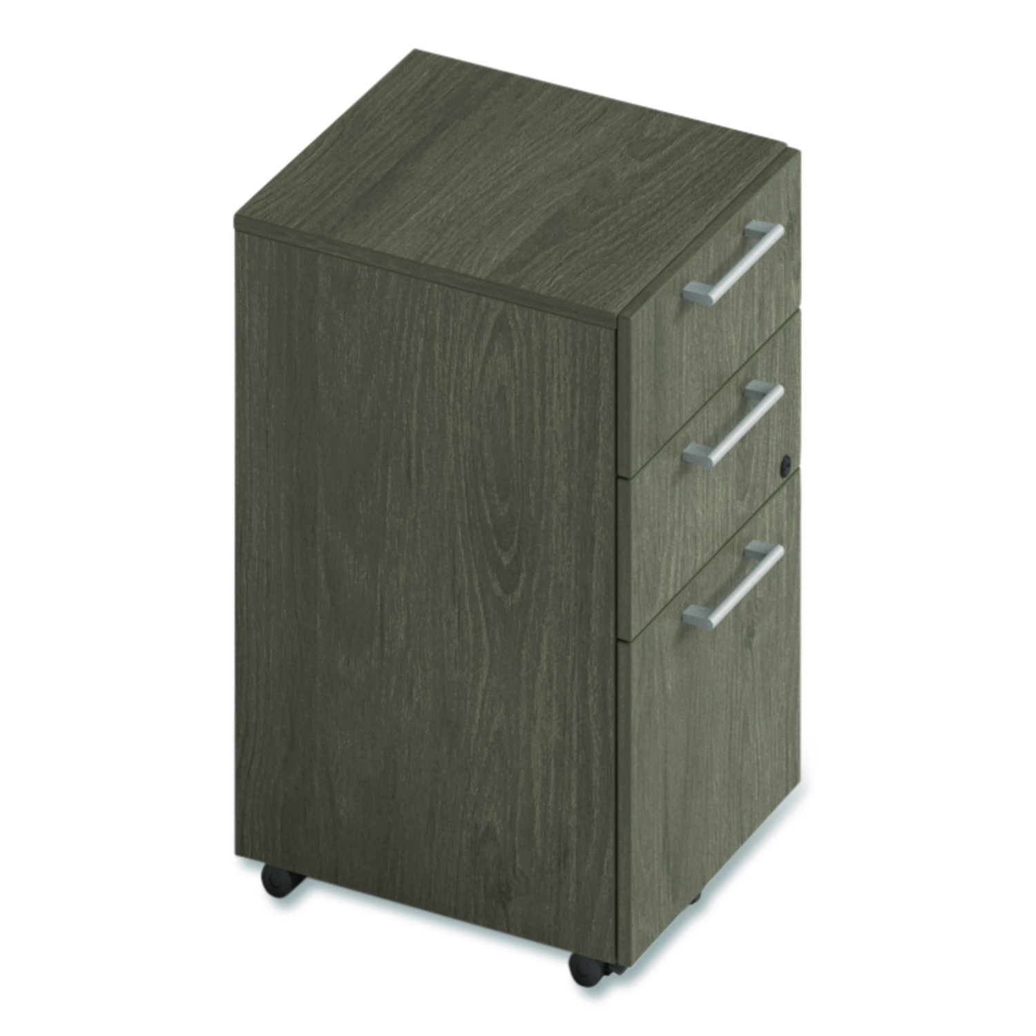 A versatile and durable storage solution, perfect for enhancing the organization of any office space. Crafted with high-quality laminate, this cabinet is designed to withstand daily wear and tear, ensuring it remains a reliable fixture in your workspace for years to come. The sleek, professional laminate finish not only adds a polished look but also offers durability against scratches and impacts. Equipped with four smooth-rolling dual-wheel casters, this pedestal cabinet is fully mobile, allowing you to easily reposition it wherever needed. Whether it’s tucked neatly under a desk or used as a standalone storage solution, the mobility feature provides flexible placement options to meet your office needs. This unit features a box/box/file configuration, making it perfect for storing a variety of office supplies, personal items, and important documents. Ideal for any professional environment, this cabinet combines practicality, mobility and modern style in one compact design. Number of Drawers: 3; Drawer Configuration: Box/Box/File; Anti-Tip Mechanism Indicator: Yes; Anti-Tip Mechanism: Interlocking Drawers.
