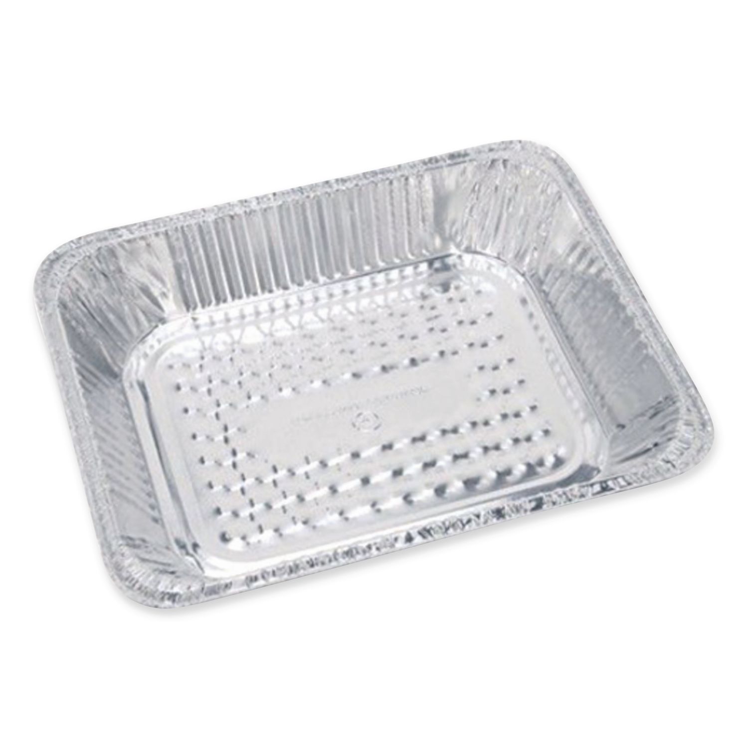 Ridged aluminum foil pan provides superior quality for cooking, freezing and storing. Excellent for catering. Used for hot or cold foods. Increased strength and holding power. Economical and recyclable. Steam Table Part Type: Half-Size Deep Pan; Material(s): Aluminum; Color(s): Silver; Width: 10.38″.