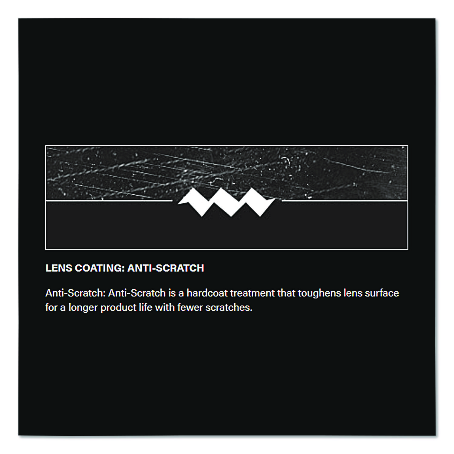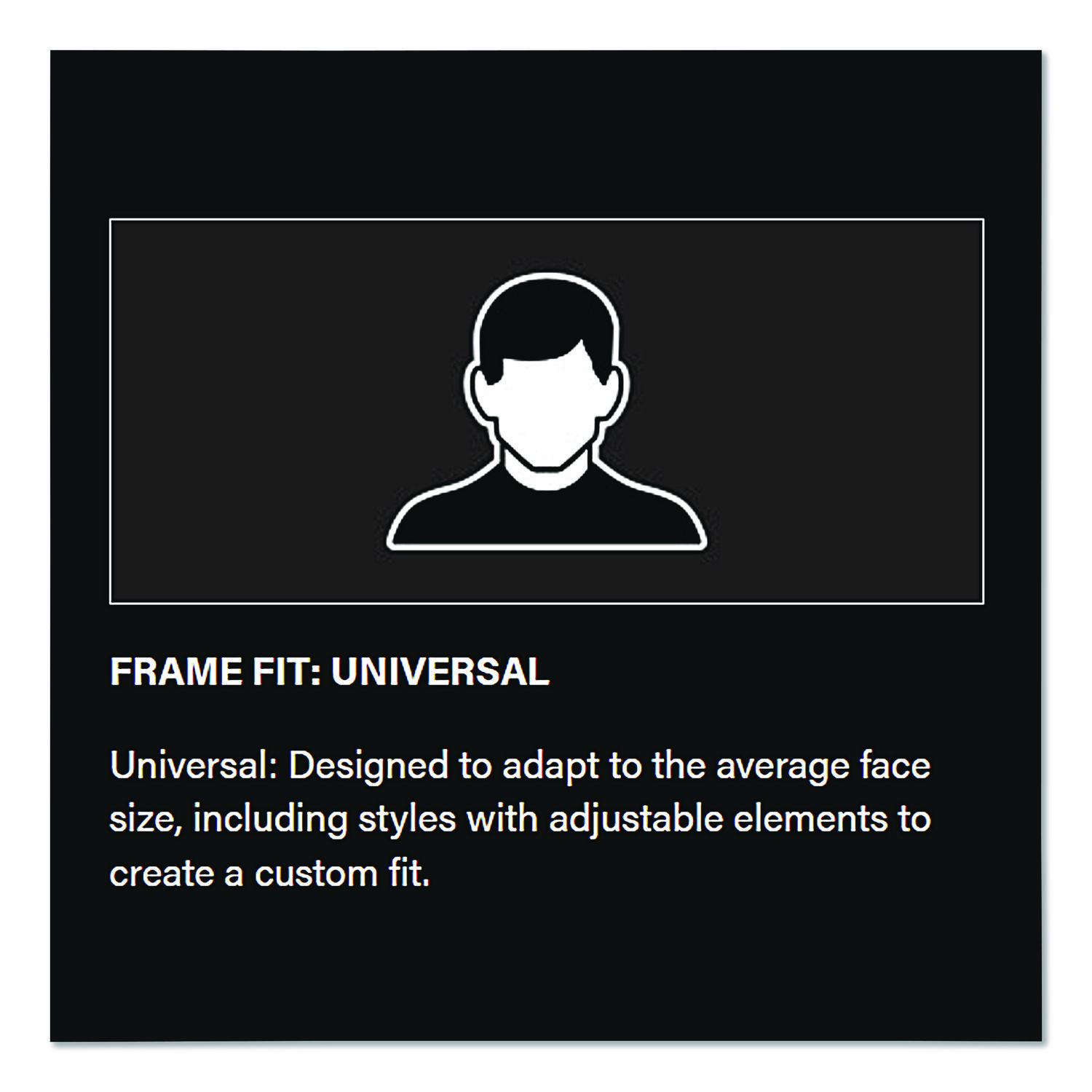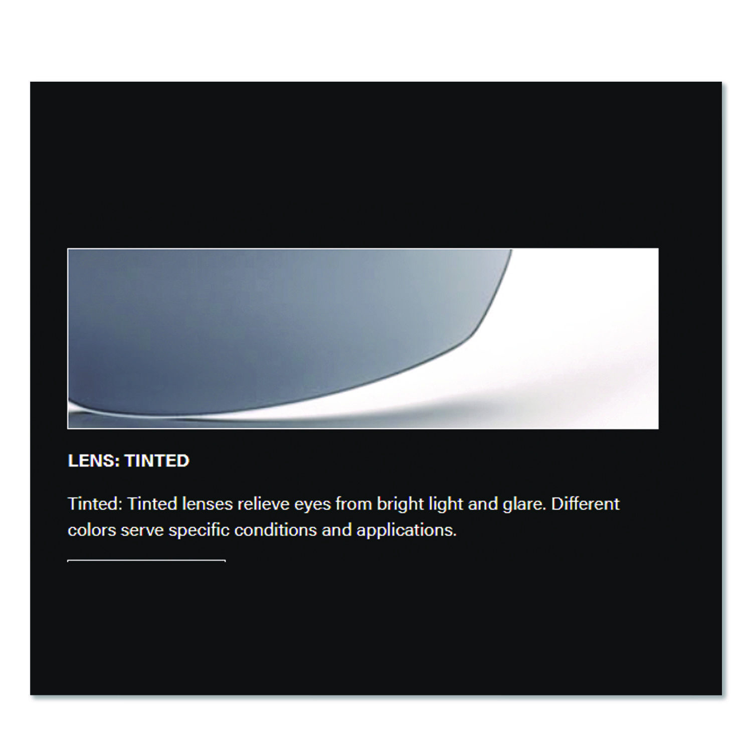 Sleek, sporty eyewear features a semi-rimless, lightweight design that provides protection from projectiles, while minimizing sun glare and ultraviolet radiation exposure. Flexible rubber nose pads and temple tips ensure all-day wearing comfort. 9 BCR (Base Curve Radius). Safety Glasses Style: Half Frame; Frame Color: Black; Arm Color: Black; Frame/Arm Material: Plastic.