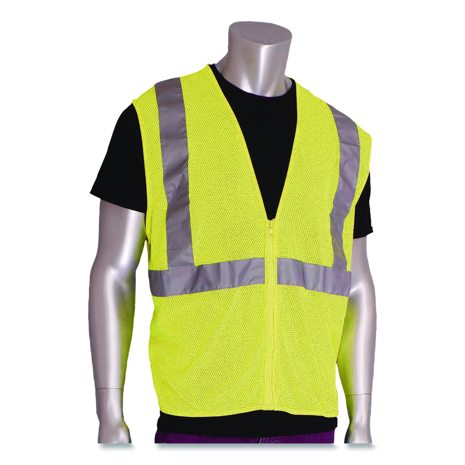 ANSI Class 2 Two-Pocket Zipper Mesh Safety Vest, Polyester Mesh, Large, Hi-Viz Lime Yellow