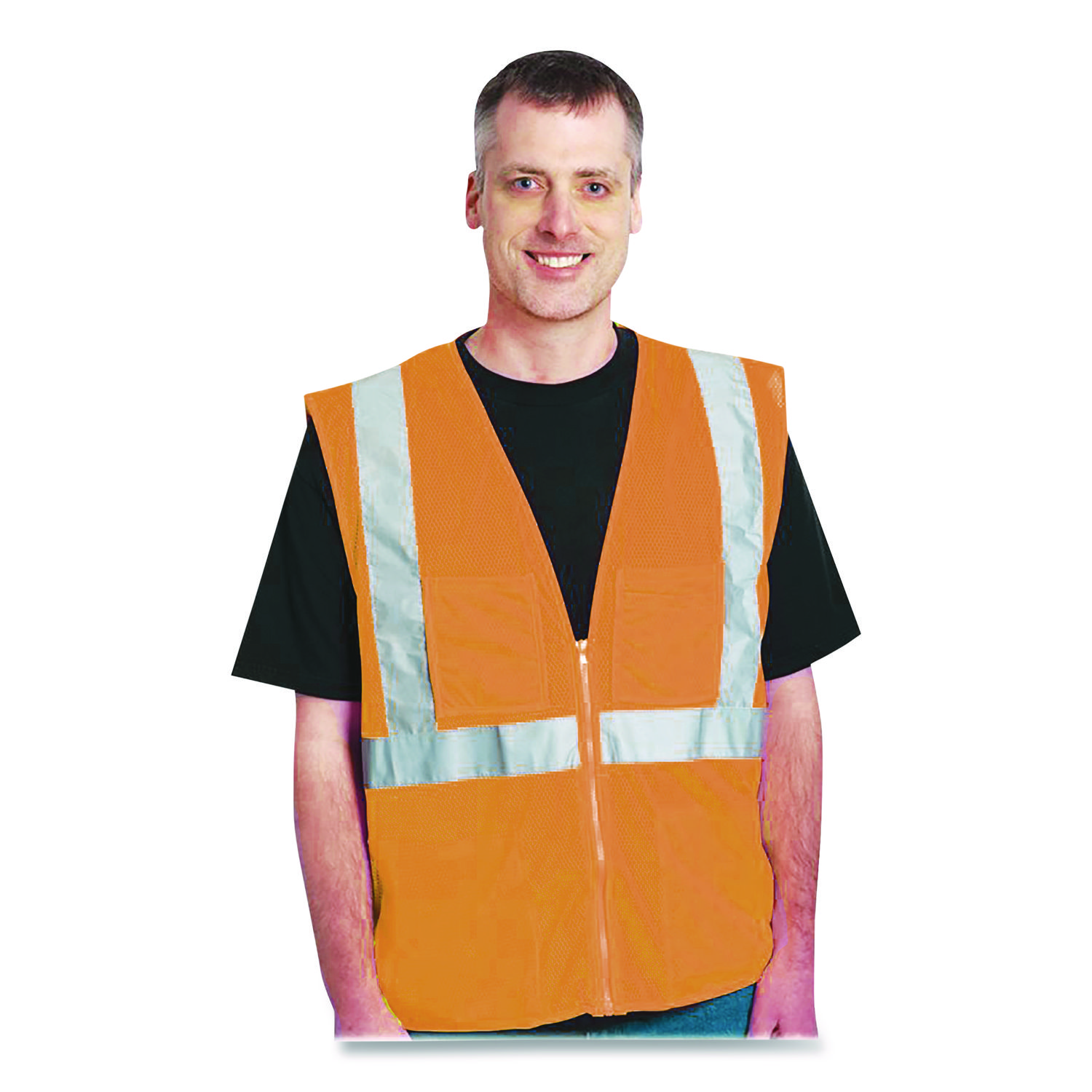 ANSI Class 2 Two-Pocket Zipper Mesh Safety Vest, Polyester Mesh, X-Large, Orange