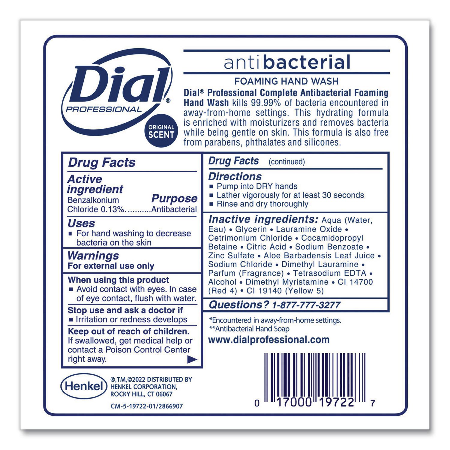 Kills 99.99% of bacteria encountered in household settings. Moisturizing formula is gentle on skin and mild enough for frequent use. Hypoallergenic. Soap Type: Moisturizing/Antibacterial Foam; Volume Capacity: 1.7 L; Scent: Original; Personal Soaps Application: Hand.
