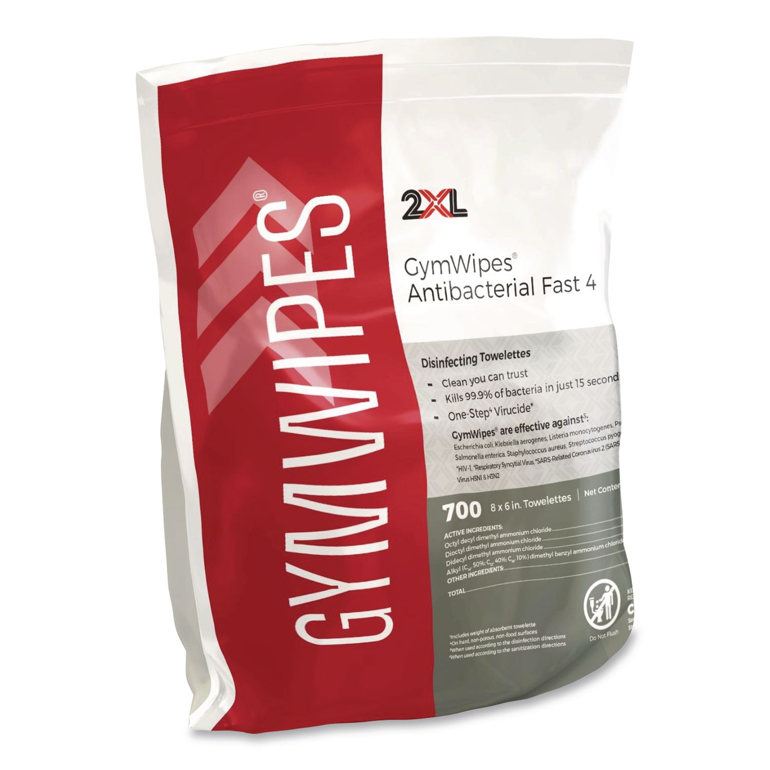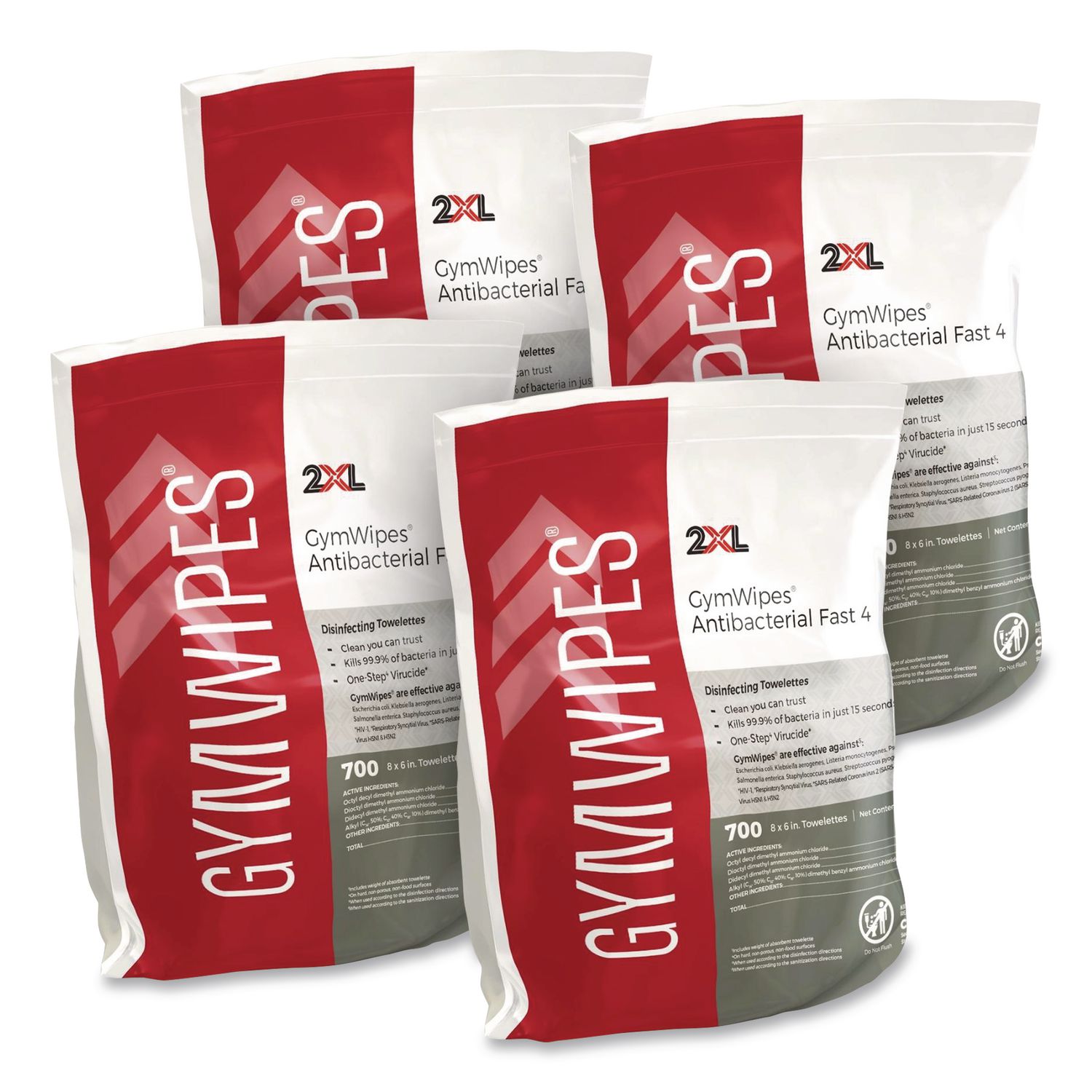 Antibacterial Gym Wipes Refill, 1-Ply, 6 x 8, Unscented, White, 700 Wipes/Pack, 4 Packs/Carton