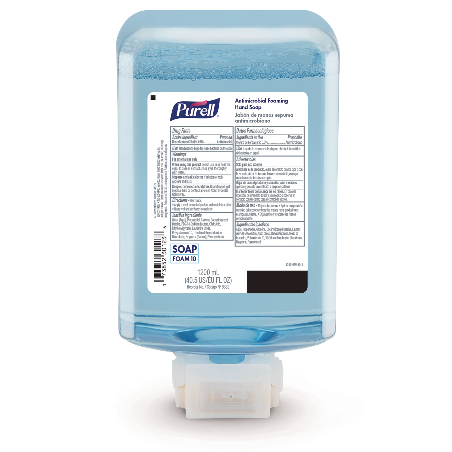 PURELL Antimicrobial Foaming Hand Soap is a quick-acting antimicrobial foam soap for general handwashing that helps reduce germs on skin that may cause illness. This specially formulated refreshing foam helps maintain the skin’s natural moisture barrier. Hypoallergenic, it is proven to be as mild as our top-selling non-antimicrobial soap. It is free of dyes, phthalates, parabens, and triclosan.Ā Bottle is made with recyclable plastic components. The collar and alkaline AA battery easily pull apart making it easy to recycle and reduce product waste. For Use With PURELL ES10 Soap Dispensers. Soap Type: Antimicrobial Foam; Volume Capacity: 1,200 mL; Scent: Plum; Personal Soaps Application: Hand.