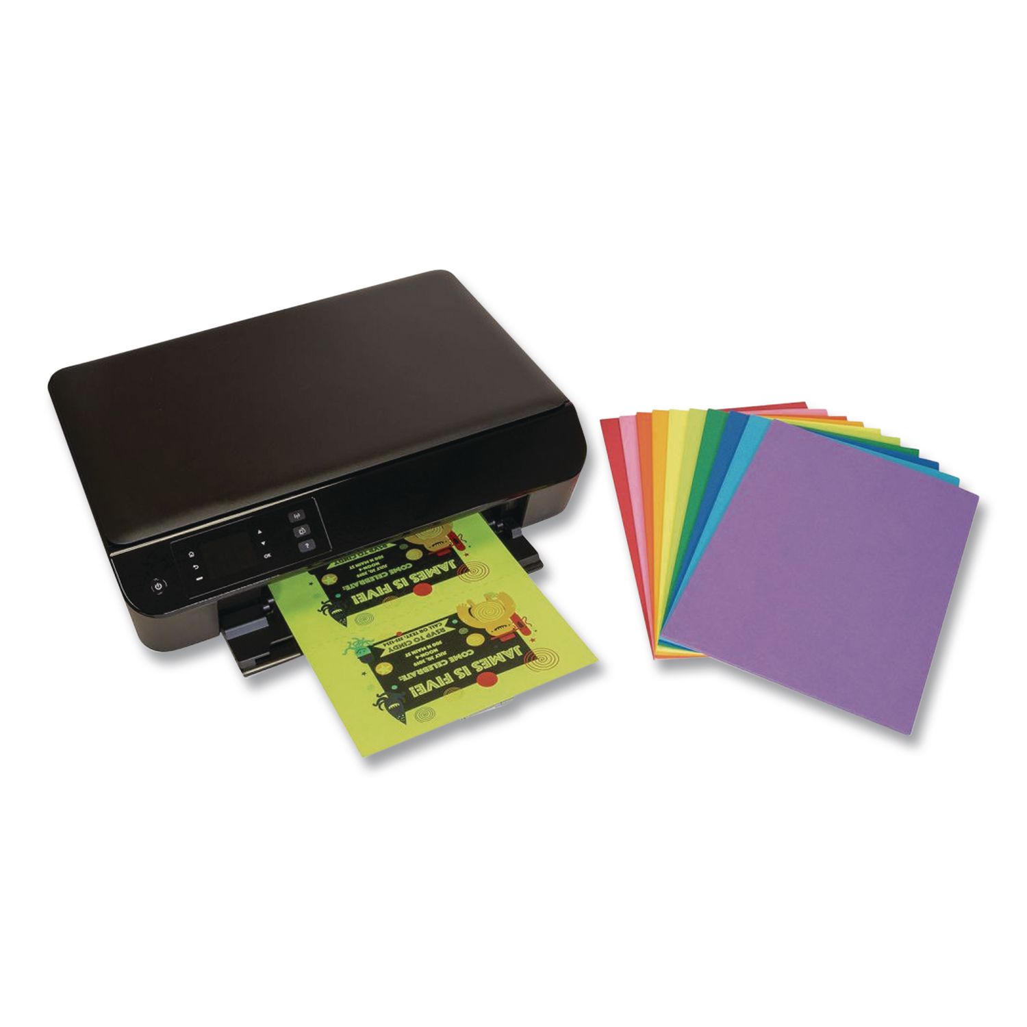 For report covers, flyers, postcards and art projects. Use in printers, copiers or typewriters. Acid-free for archival quality. Assorted Bright Colors. Sheet/Roll Size: 8.5 x 11; Paper Basis Weight (lb): 65 lb Cover; Paper/Media Color(s): Assorted Bright Colors; Color Family: Multicolor.