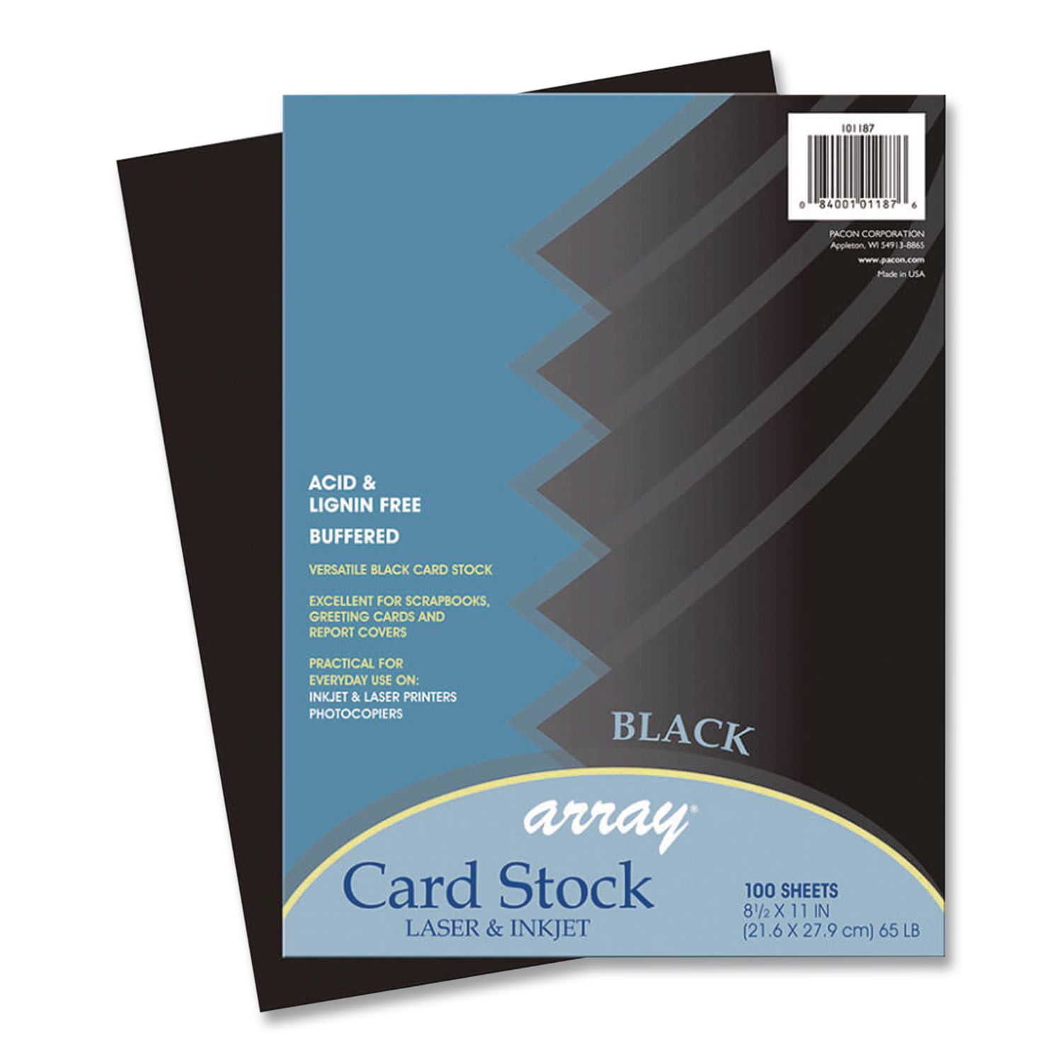Array Card Stock, 65 lb Cover Weight, 8.5 x 11, Black, 100/Pack