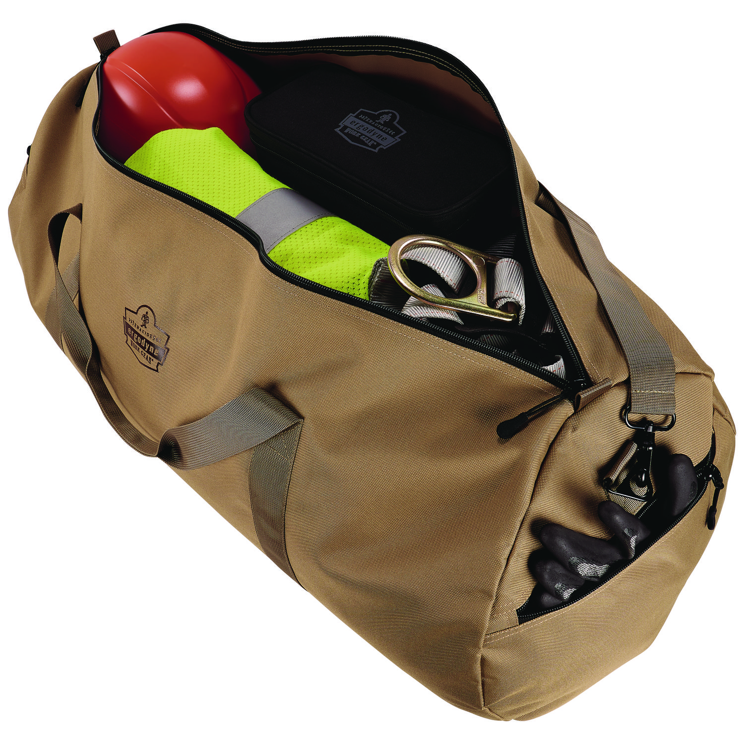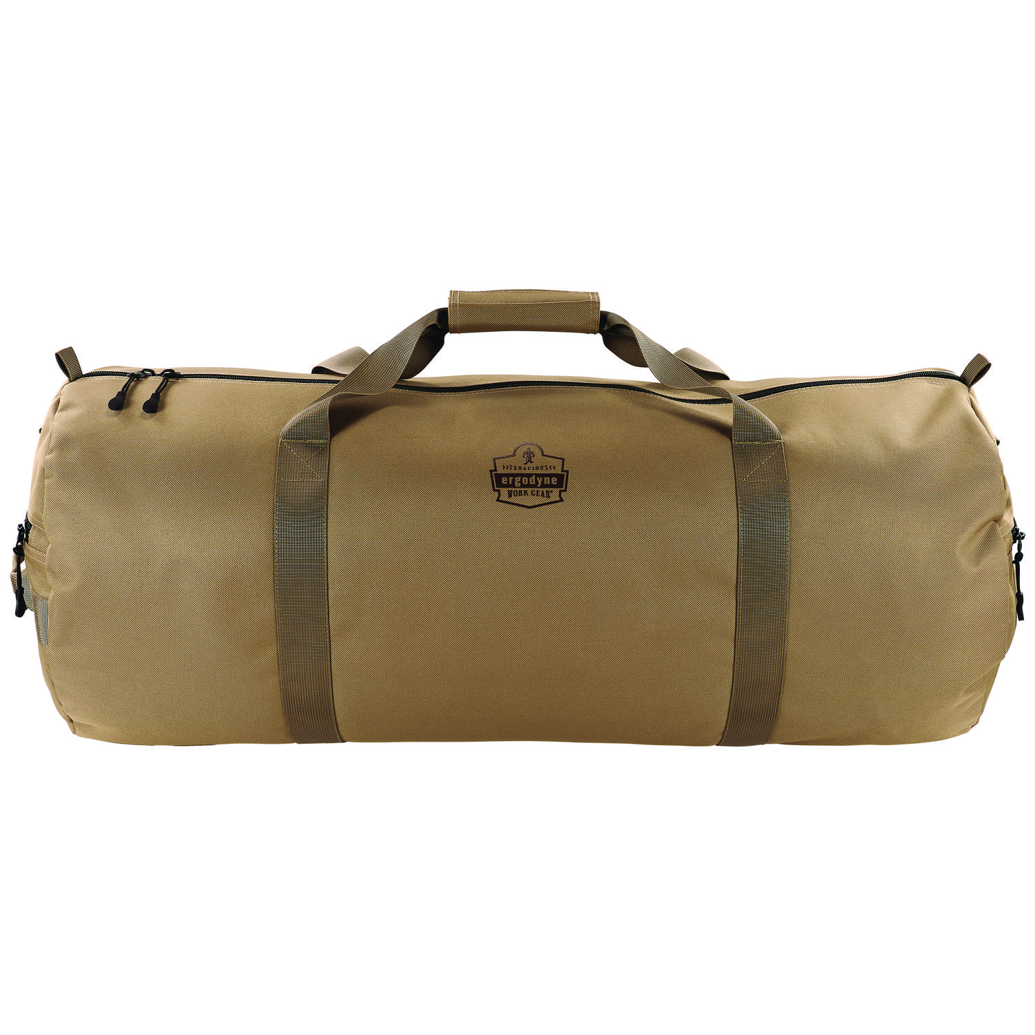 The Arsenal 5020P Standard Gear Duffel Bag is easy to carry and helps organize everything you need for the workday or the weekend. Whether you use it as a way to store your equipment on the job, a hunting bag to trek your gear through the woods, or as a carry-on duffel bag while traveling, you can rely on this utility duffel bag to house and protect your valuables. This lightweight, yet super durable gear bag is made with 600D polyester material to withstand wear and tear for long-lasting performance. Keep your essentials clean and dry with the reinforced water-resistant backing. Heavy-duty ribbed webbing handles and the adjustable padded shoulder straps. A large open main compartment fits all your gear with easy loading and unloading, so nothing is left behind. There are two accessory pockets with zippers on each side to hold smaller items. For Use With: Gear; Color(s): Khaki; Color Family: Brown; Material(s): Polyester.