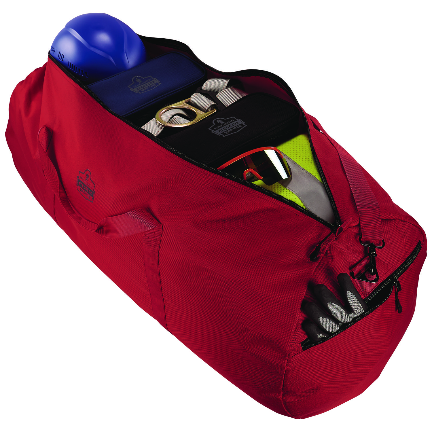 The Arsenal 5020P Standard Gear Duffel Bag is easy to carry and helps organize everything you need for the workday or the weekend. Whether you use it as a way to store your equipment on the job, a hunting bag to trek your gear through the woods, or as a carry-on duffel bag while traveling, you can rely on this utility duffel bag to house and protect your valuables. This lightweight, yet super durable gear bag is made with 600D polyester material to withstand wear and tear for long-lasting performance. Keep your essentials clean and dry with the reinforced water-resistant backing. Heavy-duty ribbed webbing handles and the adjustable padded shoulder straps. A large open main compartment fits all your gear with easy loading and unloading, so nothing is left behind. There are two accessory pockets with zippers on each side to hold smaller items. For Use With: Gear; Color(s): Red; Color Family: Red; Material(s): Polyester.