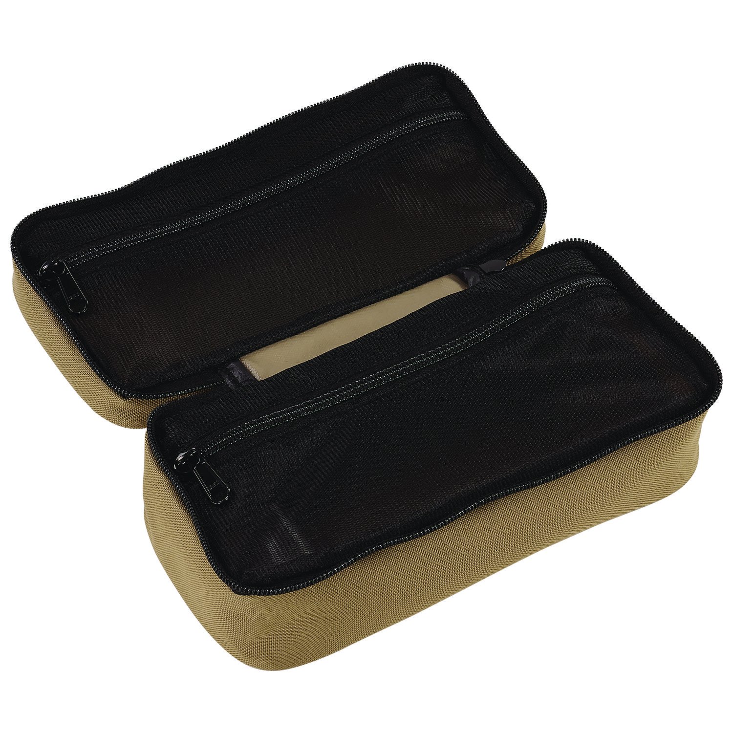 The Arsenal 5877 Softshell Tool Case is built for easy storage and organization of small tools, accessories or personal items, while also remaining compact enough to easily transport and store. Crafted with a durable 600D polyester material and water-resistant backing, these zippered bags are designed to protect gear for long-lasting use. This tool case opens completely and lays flat for easy access and viewing. Two mesh, zippered pockets in the interior make for complete and easy organization of small items and tools, while an exterior ID card window holds business cards and jobsite IDs for easy identification. A top grab handle makes for easy transport. Ideal for installers, electricians, carpenters, HVAC workers and various trade professionals, as well as for personal use for home organization, photographers or makeup artists. Large. Organizer Type: Bag; Material(s): Polyester; Color(s): Khaki; Depth: 4.5″.