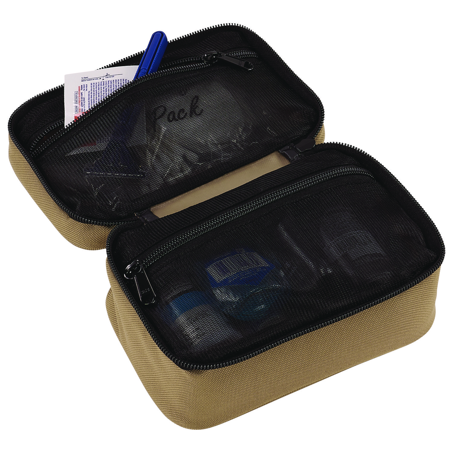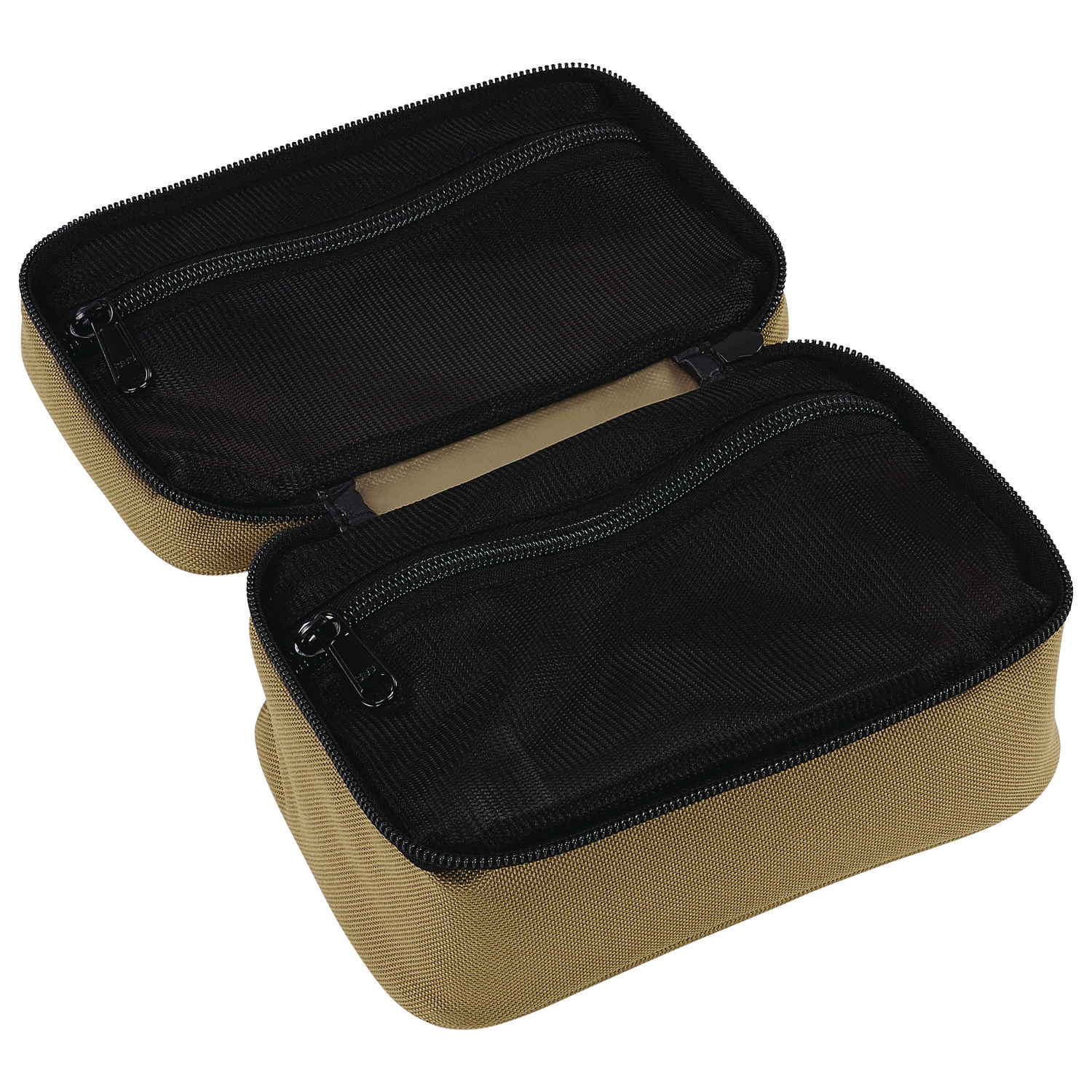 The Arsenal 5877 Softshell Tool Case is built for easy storage and organization of small tools, accessories or personal items, while also remaining compact enough to easily transport and store. Crafted with a durable 600D polyester material and water-resistant backing, these zippered bags are designed to protect gear for long-lasting use. This tool case opens completely and lays flat for easy access and viewing. Two mesh, zippered pockets in the interior make for complete and easy organization of small items and tools, while an exterior ID card window holds business cards and jobsite IDs for easy identification. A top grab handle makes for easy transport. Ideal for installers, electricians, carpenters, HVAC workers and various trade professionals, as well as for personal use for home organization, photographers or makeup artists. Small. Organizer Type: Bag; Material(s): Polyester; Color(s): Khaki; Depth: 4.5″.