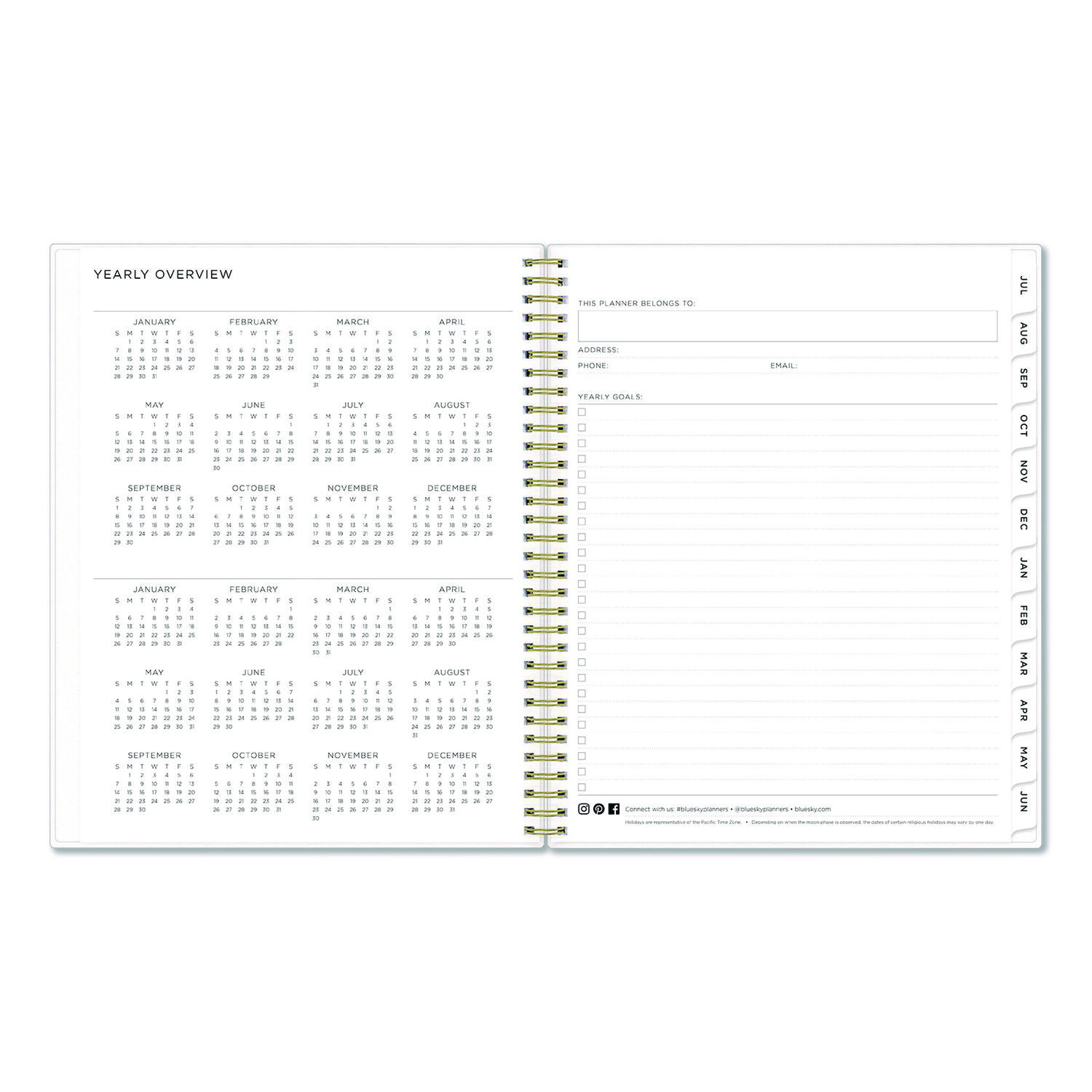 Enjoy stand-out style with this planner’s pink, blue and green Multicolor Smoke cover design and gold twin-wire binding. Inside, a motivational title page gets you started with a customizable list for your school year goals; and beyond the first page, use the planner’s open-format weekly spreads to stay on top of your day to day. Coordinate your weekly scheduling tasks with the tabbed monthly spreads to keep yourself poised for what’s to come; and throughout the year, stay organized with dedicated pages for your yearly goals, contacts, important dates and more. Thick, premium quality paper stock minimizes the potential for ink bleed through. Dated: Yes; Academic Year: Yes; Calendar Format: Weekly/Monthly; Calendar Spread Format: One Week per Two-Page Spread; One Month per Two-Page Spread.